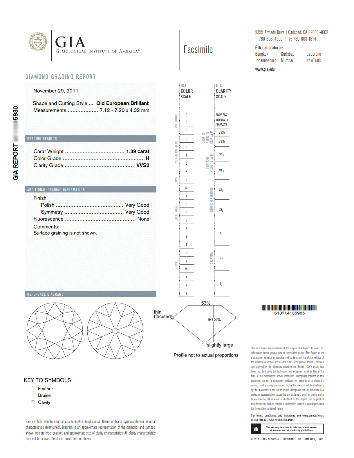 1 old European-cut diamond: 1.39 carat