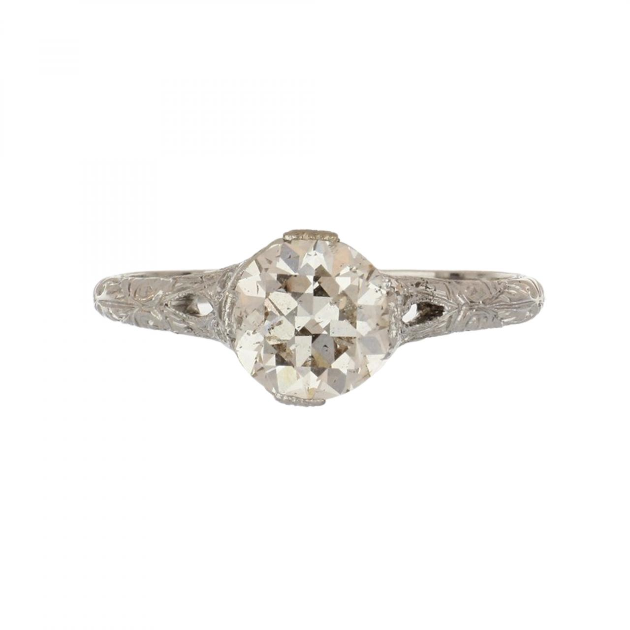 An estate antique Art-Deco diamond engagement ring in platinum. Circa 1920.
