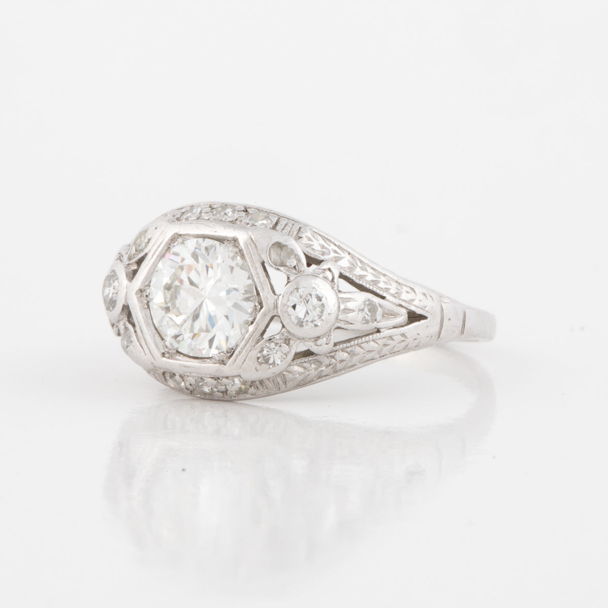 Art Deco Platinum 0.77ct Old European-Cut Diamond Engagement Ring