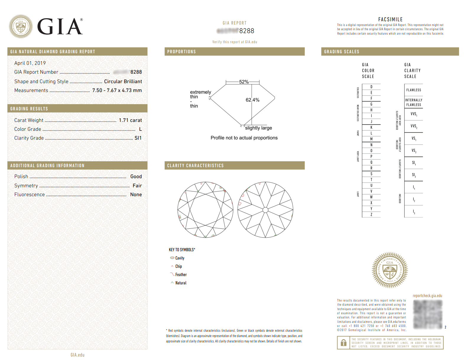 1 Old European-cut diamond=1.71 carats, L color, SI1 clarity