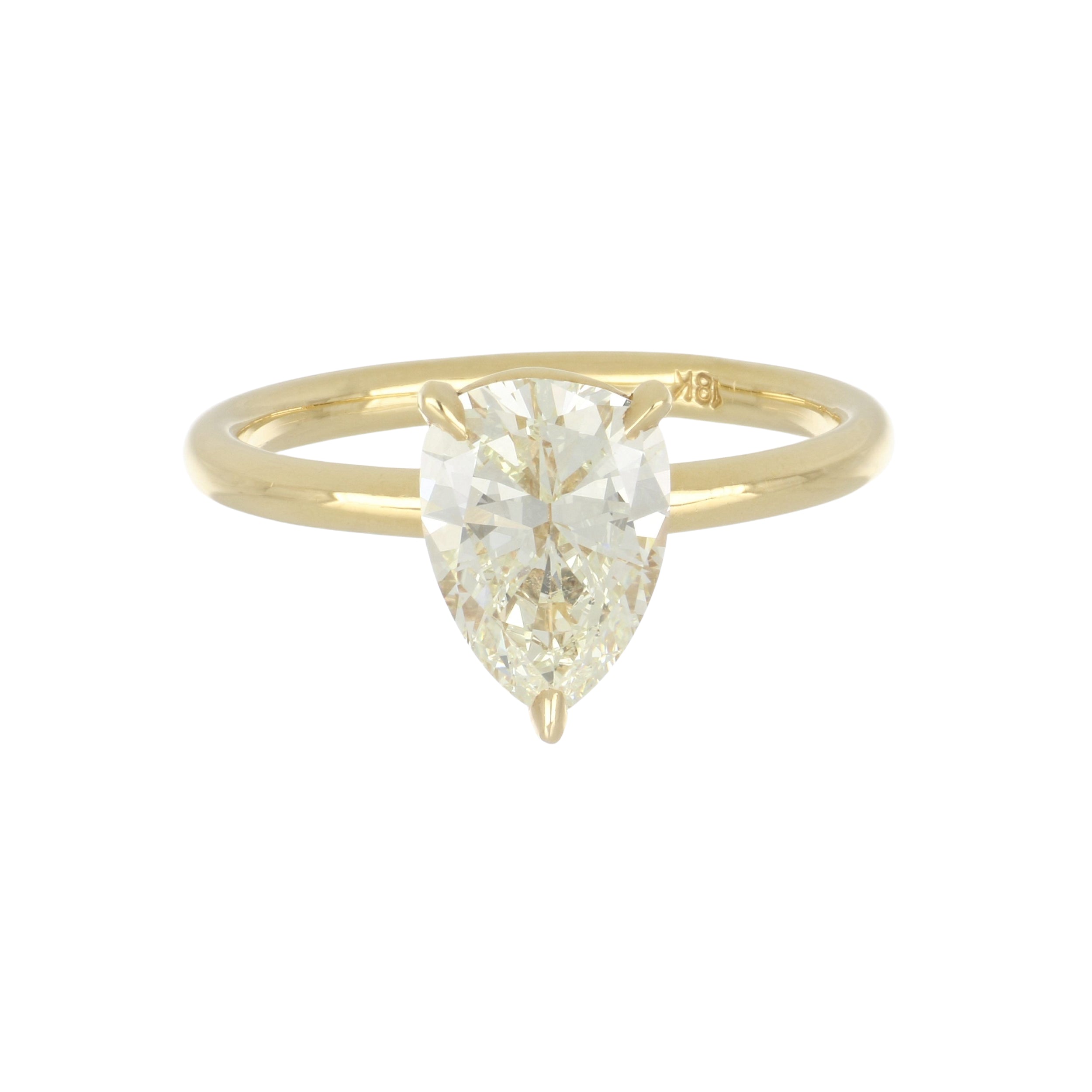 A solitaire pear shape diamond engagement ring, set in 18K yellow gold.Tenenbaum Workshop Collection1 pear brilliant-cut diamond: 1.56 total carat weightK color, VVS2 claritySize: 6.00; sizable