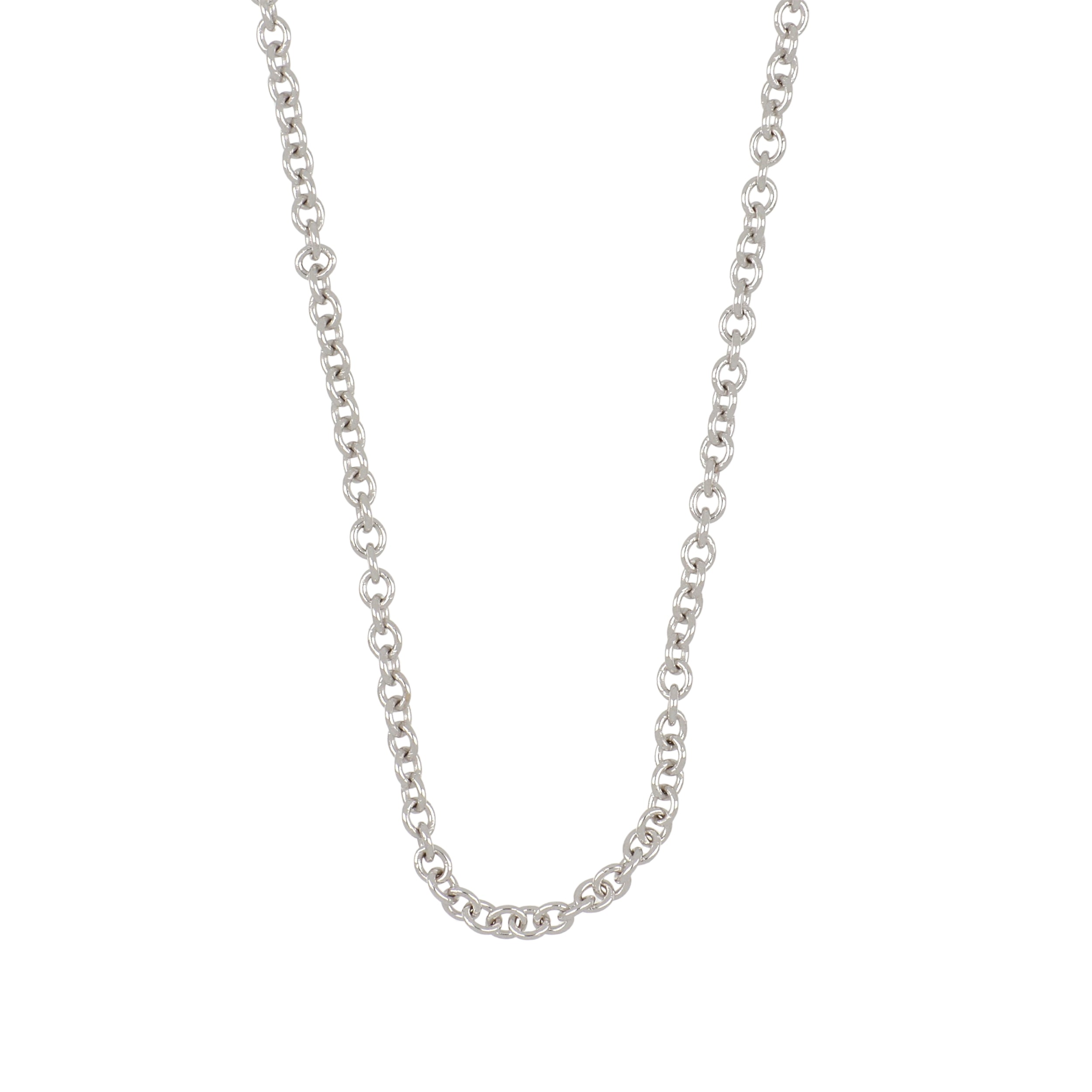 A 14K white gold 1.3 mm 16 inch cable chain.