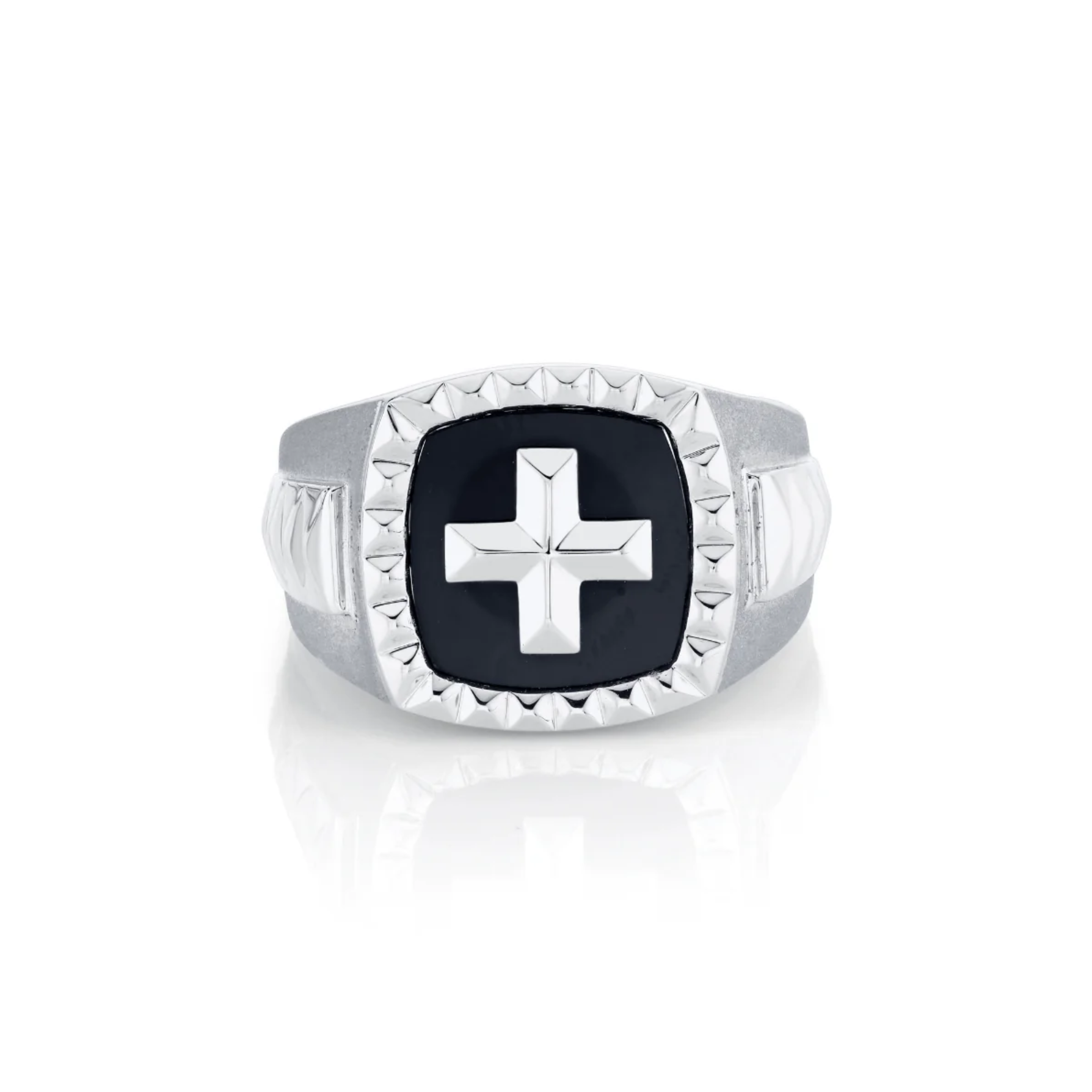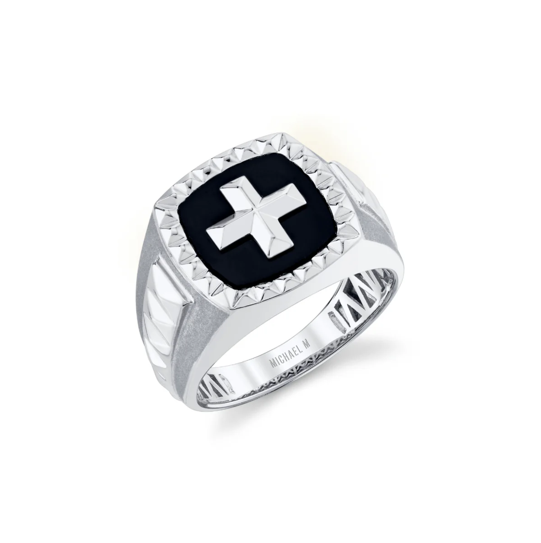 A Michael M Men's Tetra Signet Ring with onyx center in sterling silver.
