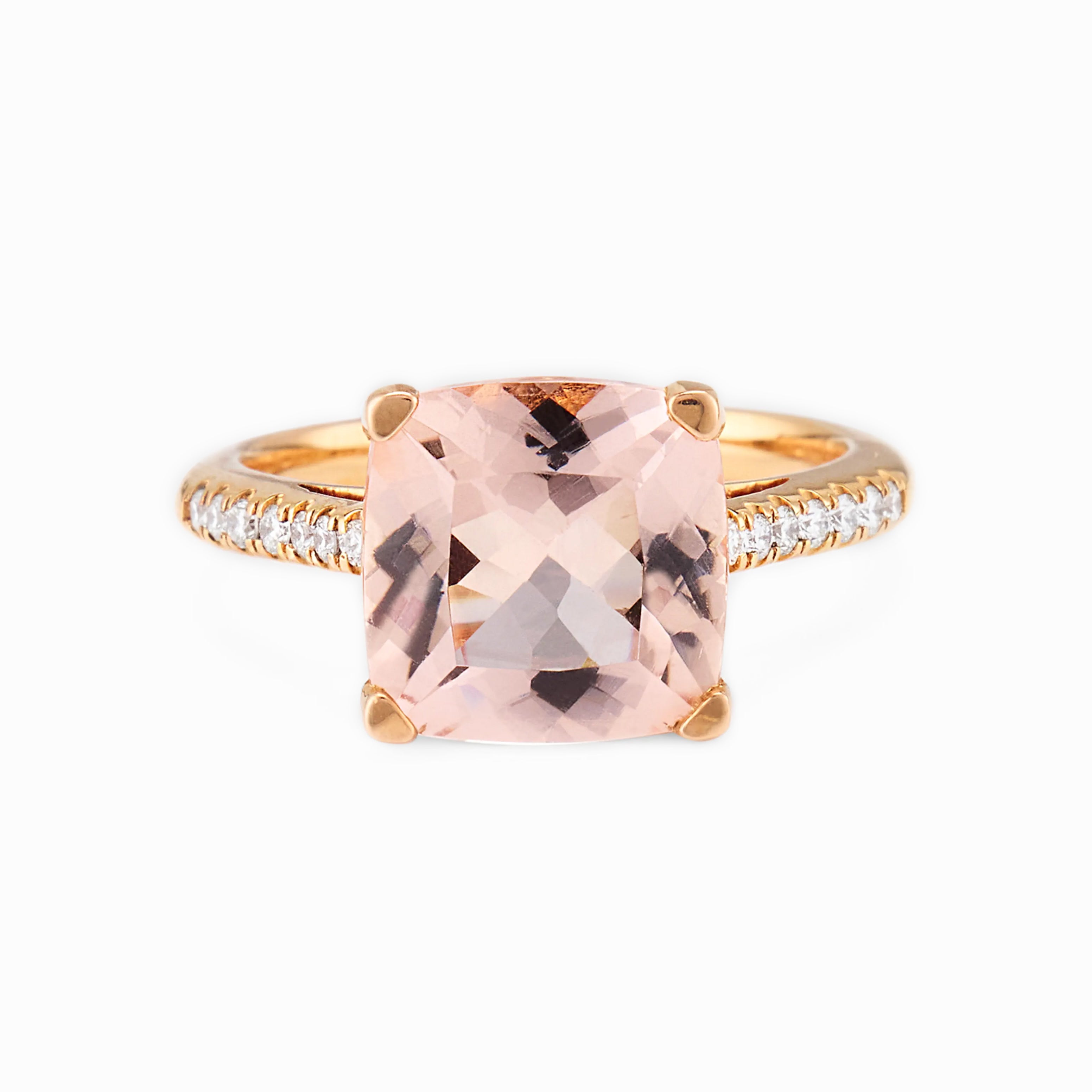 A Lisa Nik 'Rocks' collection ring featuring a cushion-shaped morganite with round diamond accents in 18K rose gold.