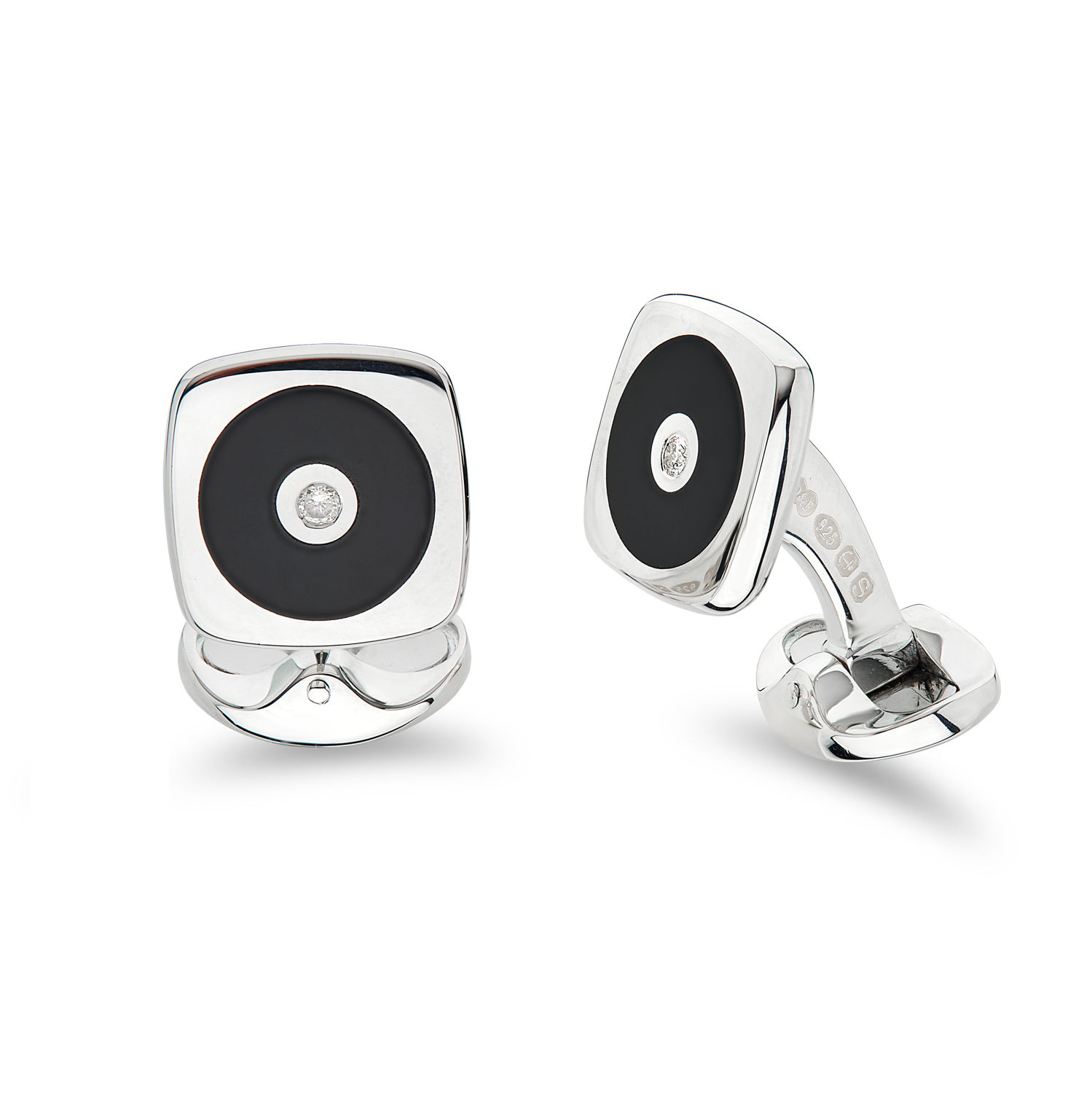 Deakin & Francis Sterling Silver Onyx Cufflinks with Diamonds