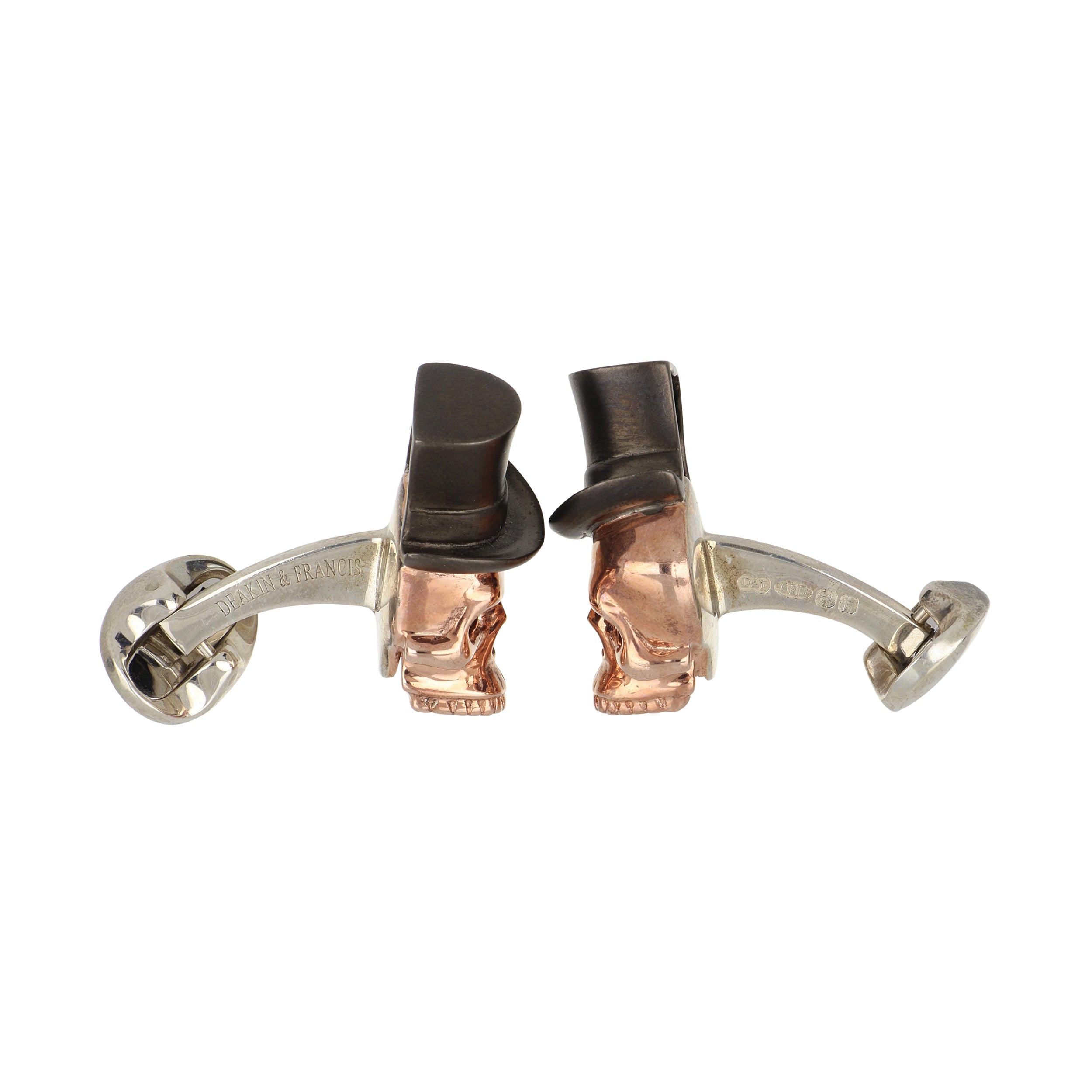A pair of Deakin & Francis sterling silver and rose gold plated top hat skull cufflinks.