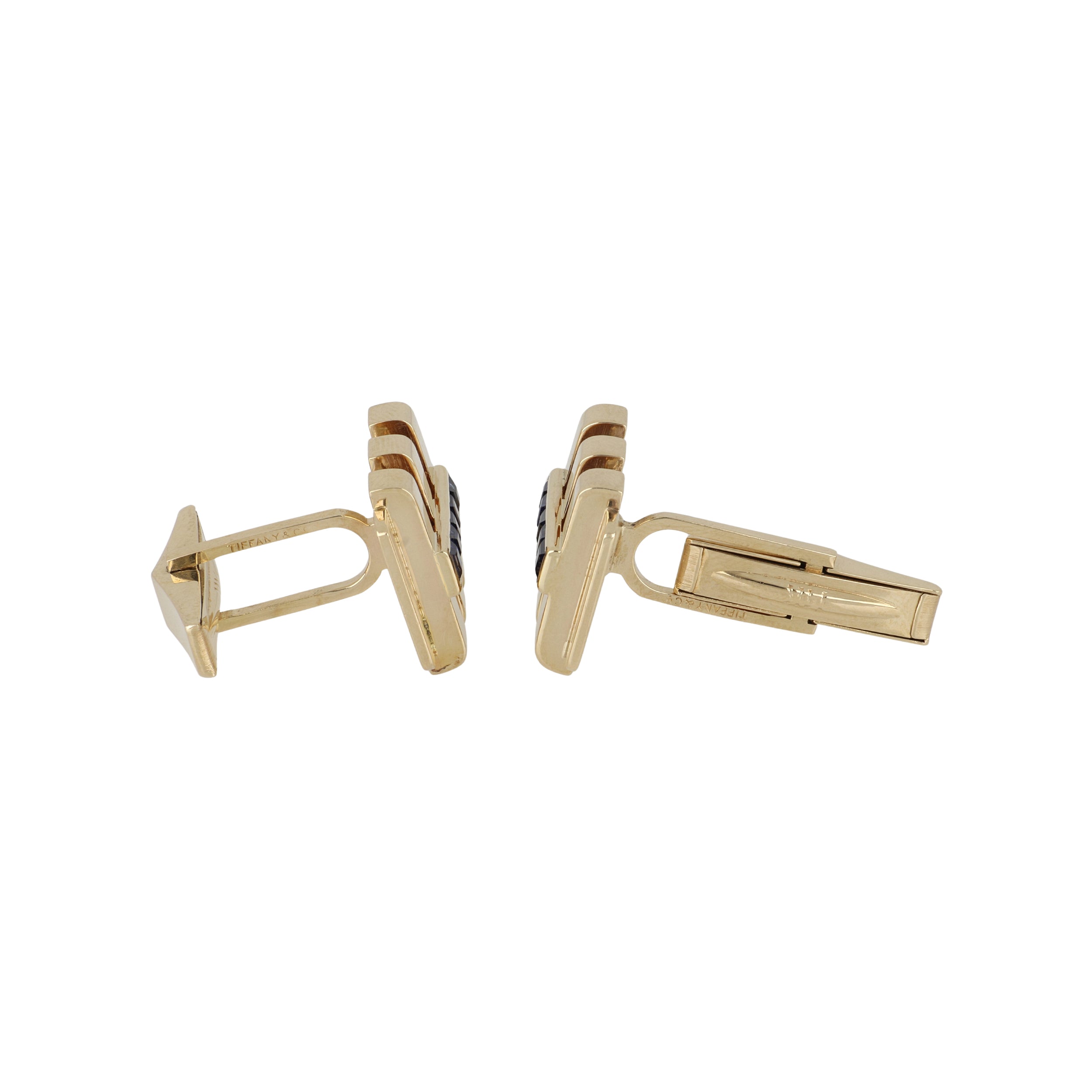 A pair of antique, Mid-Century, Tiffany & Co. rectangular shape, multi bar cufflinks with channel-set square-cut sapphires in 14K yellow gold. Circa 1960.