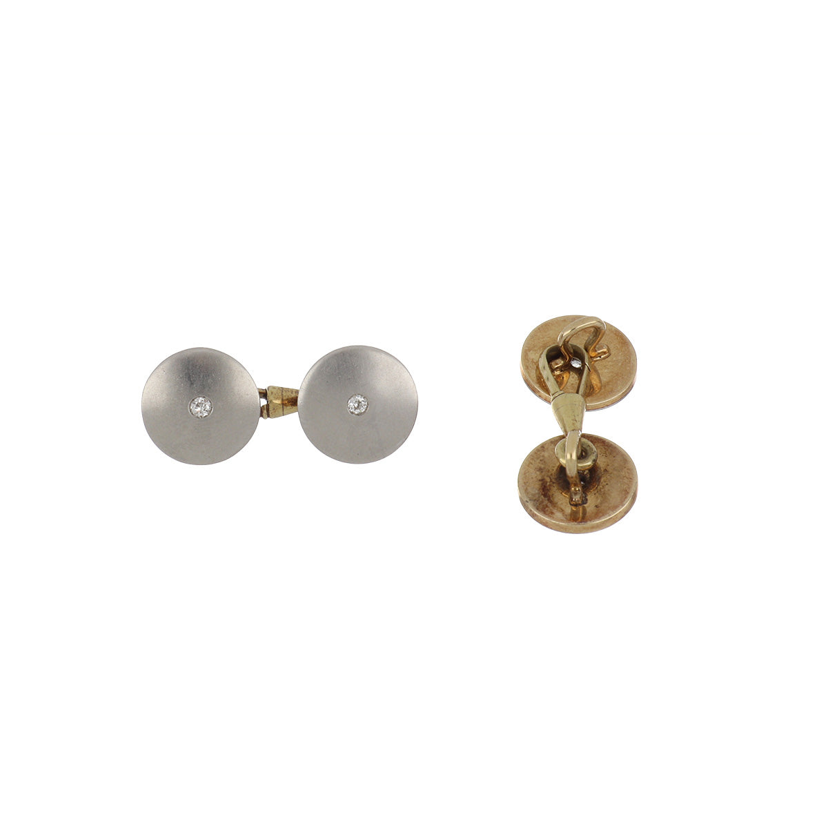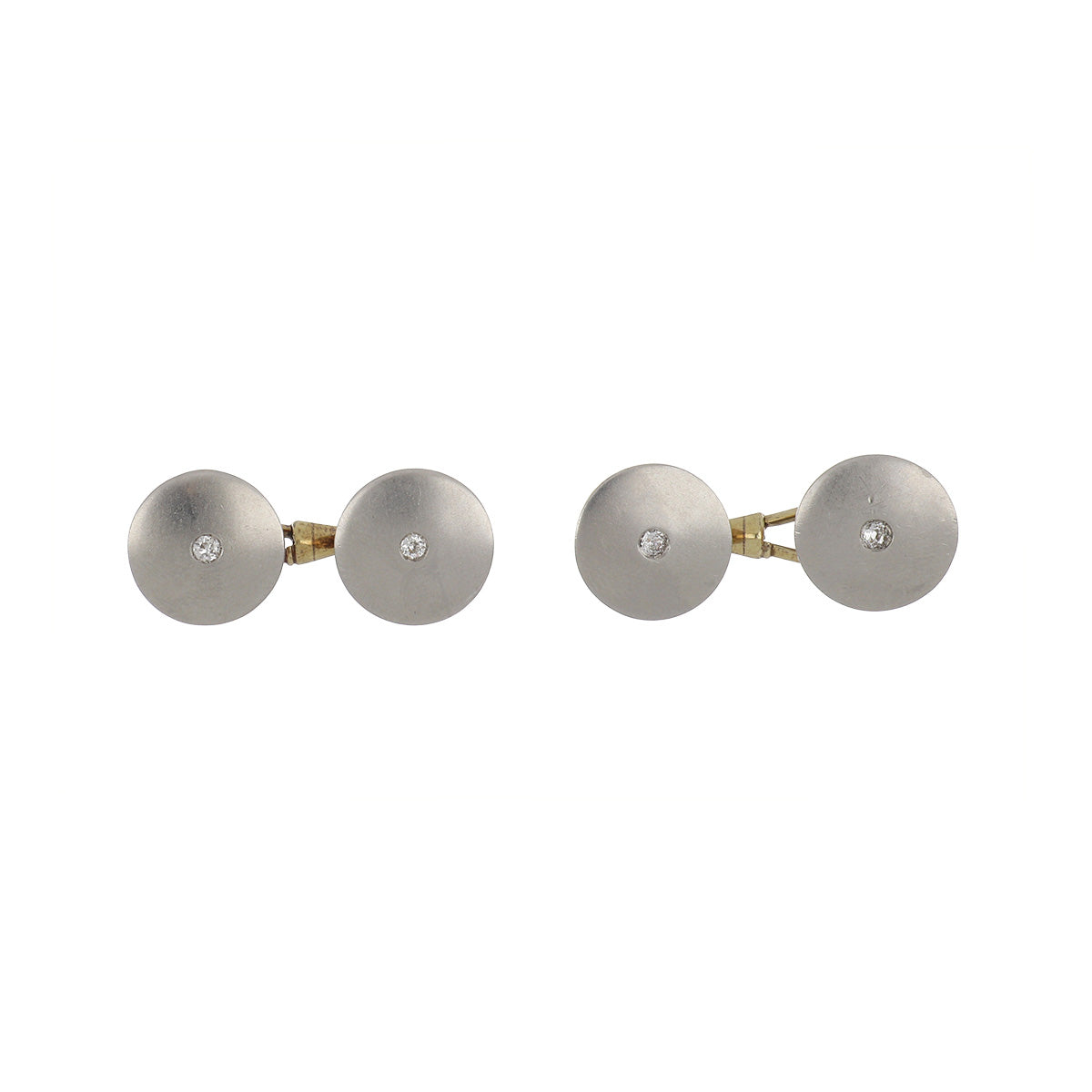 A pair of Art Deco Austrian platinum and 14K gold diamond disk cufflinks.
