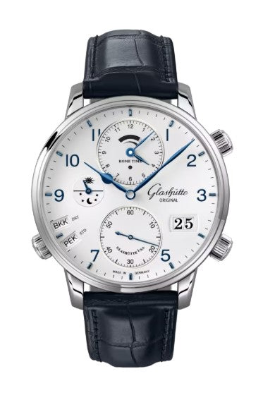 A Glashutte stainless steel Senator Cosmopolite watch.