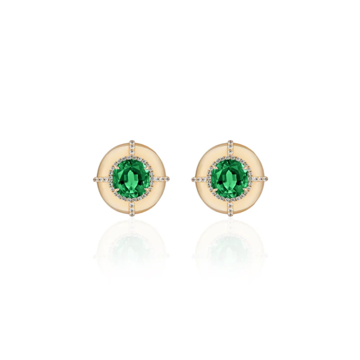 Goshwara 18K Limited Edition Emerald Medallion Stud Earrings