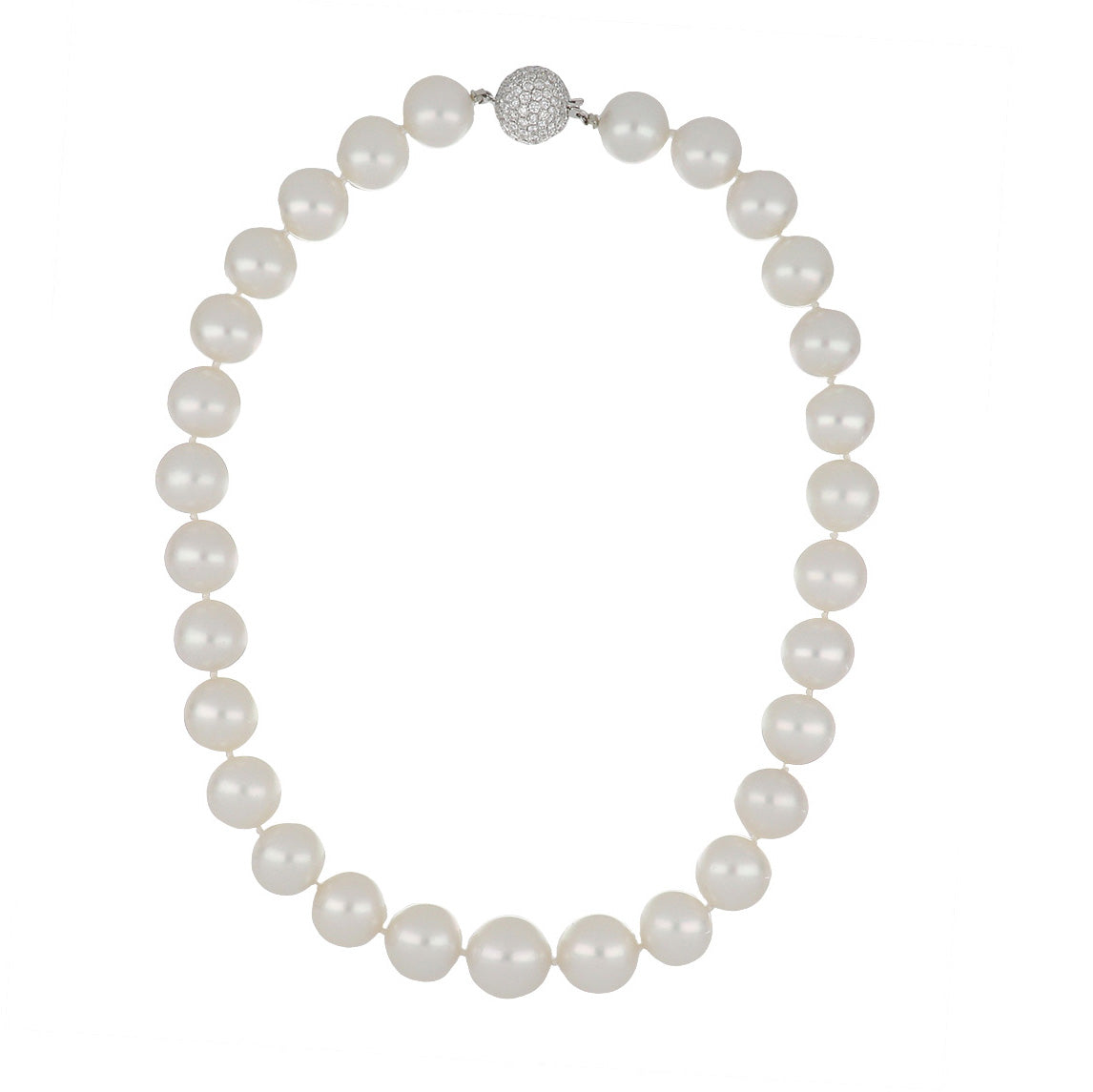 An estate South Sea pearl necklace, with an 18K white gold diamond clasp. Circa 2000.