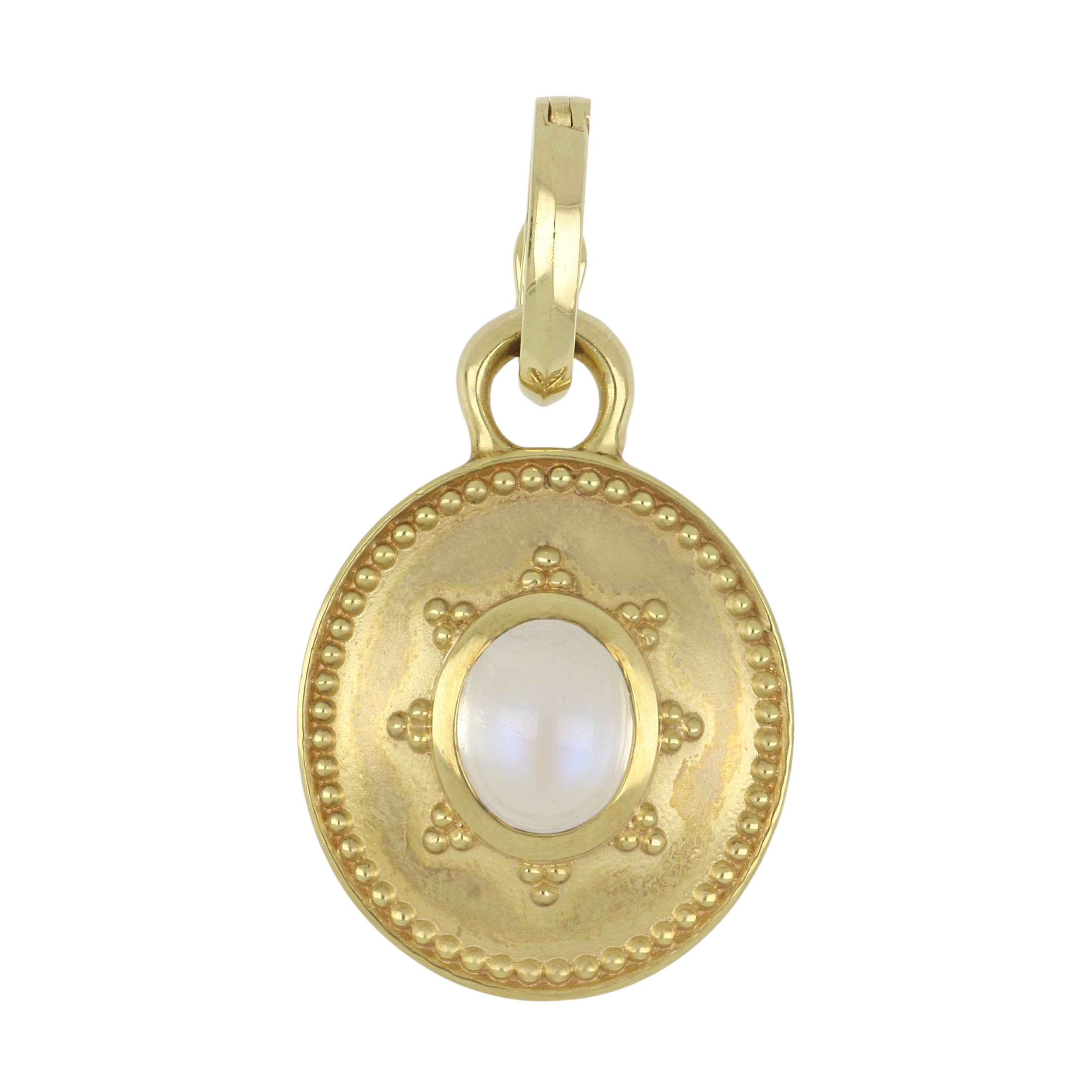 A Mazza bezel-set cabochon moonstone brushed pendant with gold bead accents, set in 14K yellow gold.