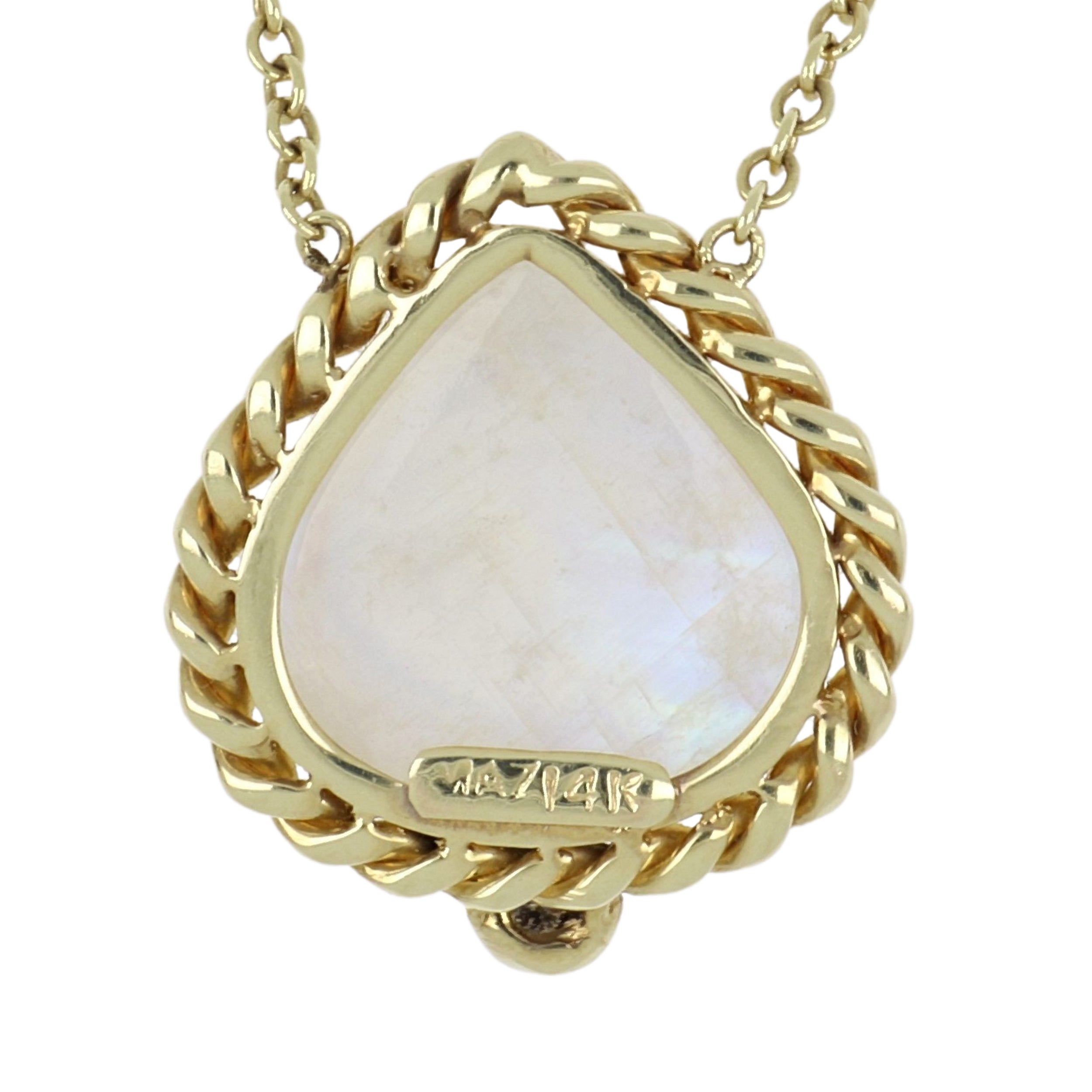 Mazza 14K Cabochon Moonstone Rope Border Pendant Necklace