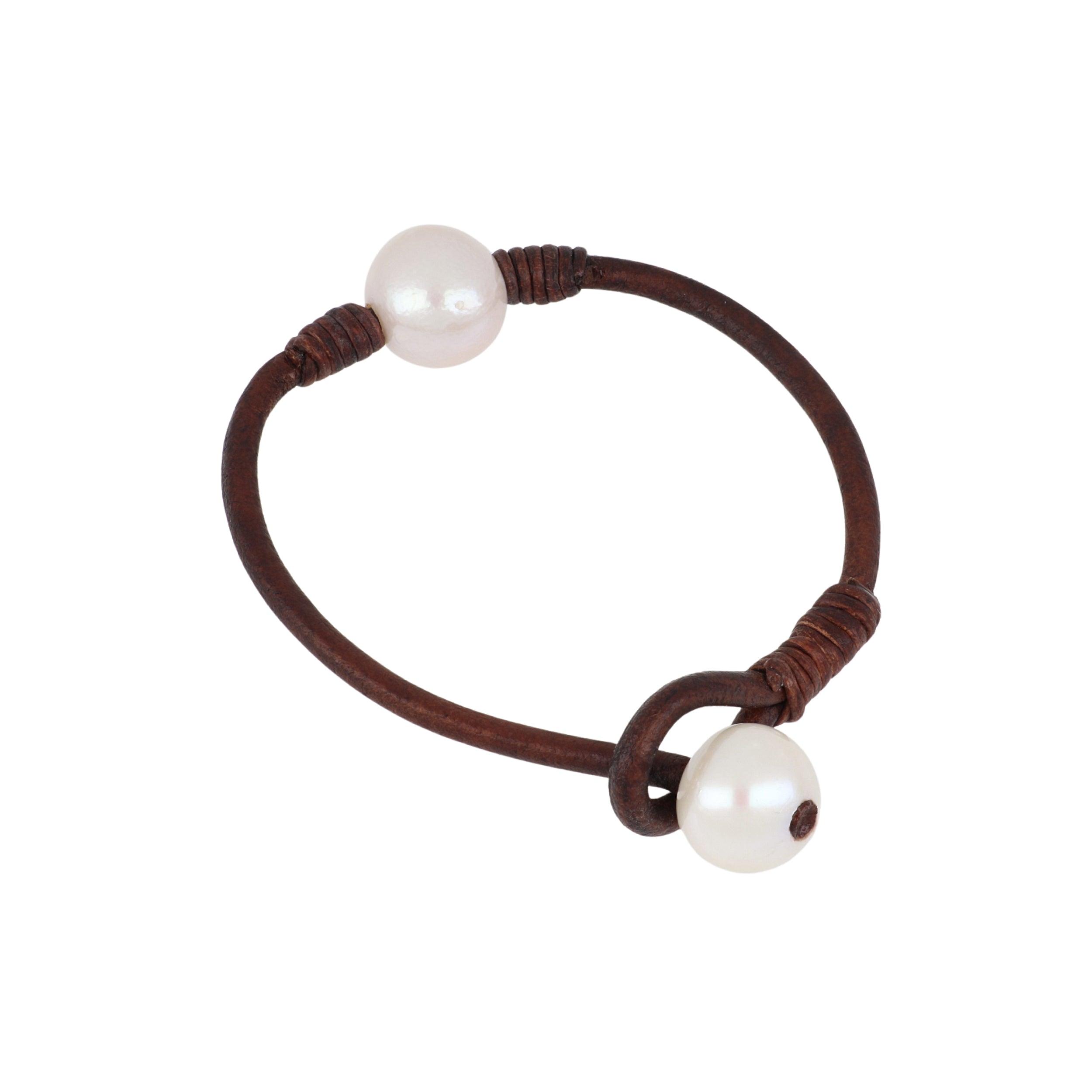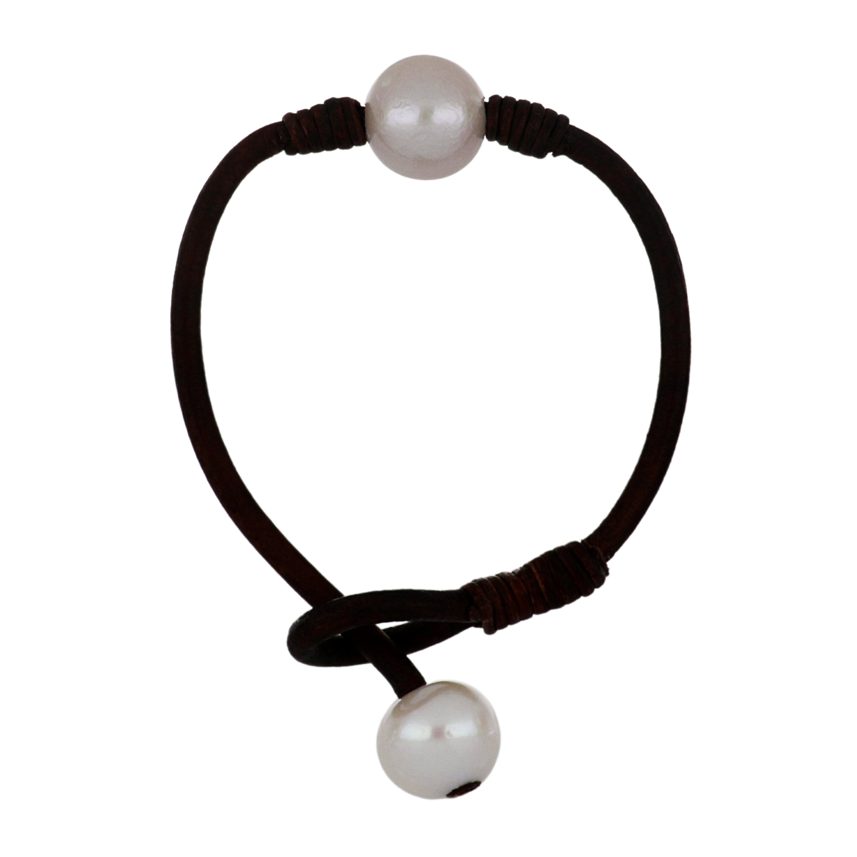 A new Vincent Peach Seaplicity leather cord bracelet with two freshwater pearls.