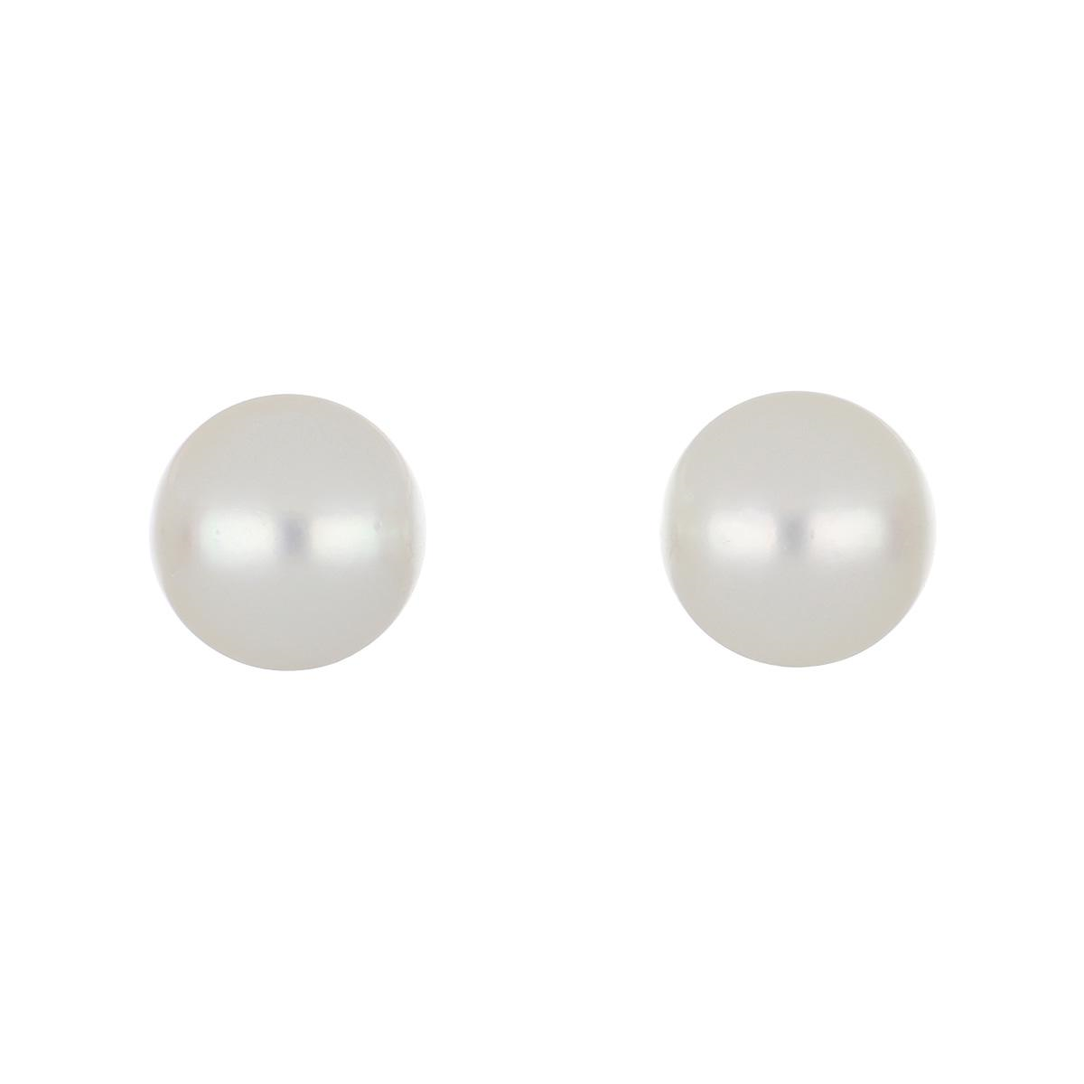 A pair of round south sea pearl stud earrings in 14k white gold.