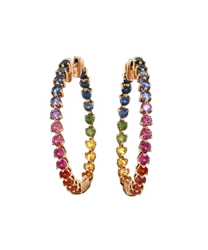 A pair of Lisa Nik inside outside rainbow sapphire hoop earrings, set in 18K rose gold.