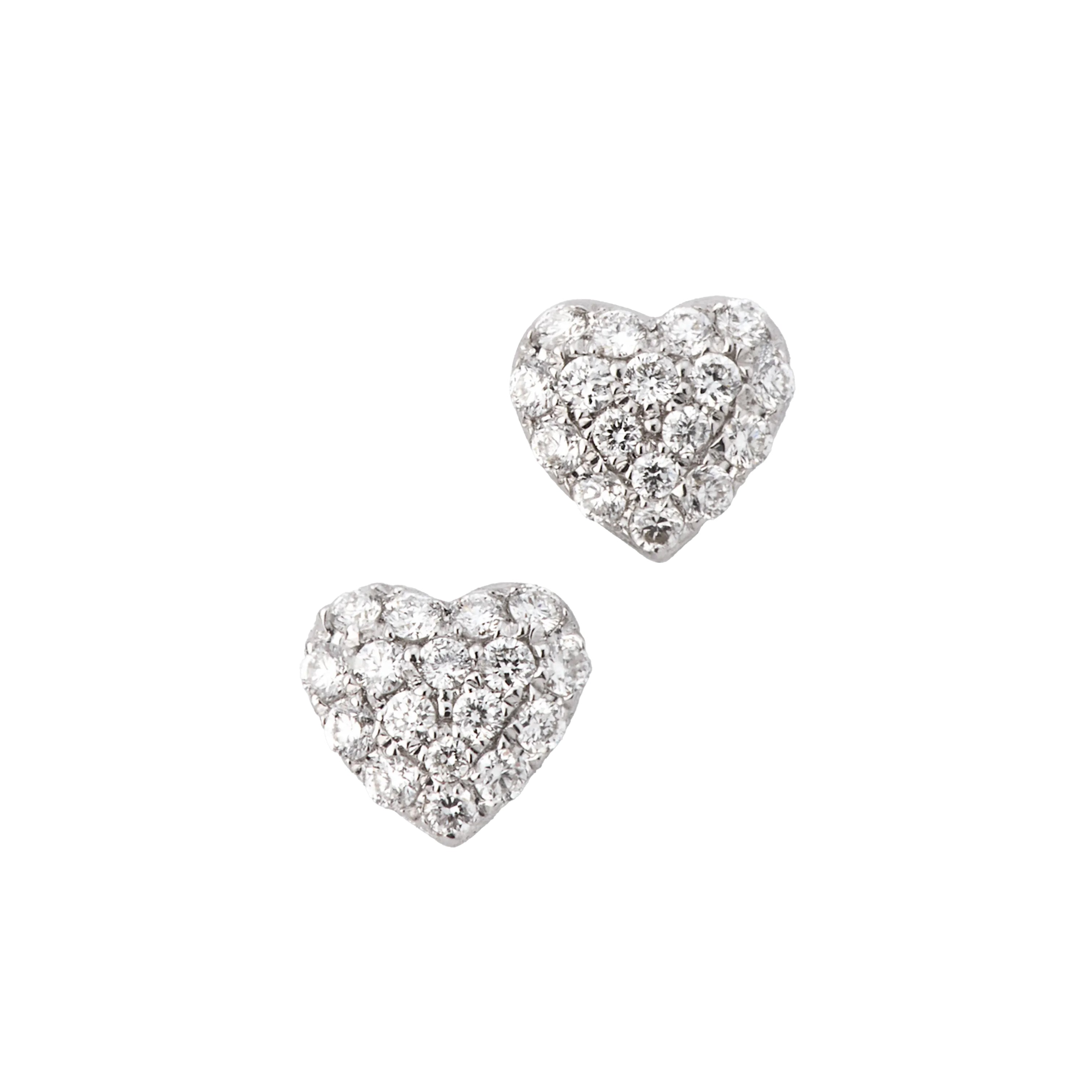 A pair of Lisa Nik heart stud earrings with pave diamonds, set in 18K white gold.