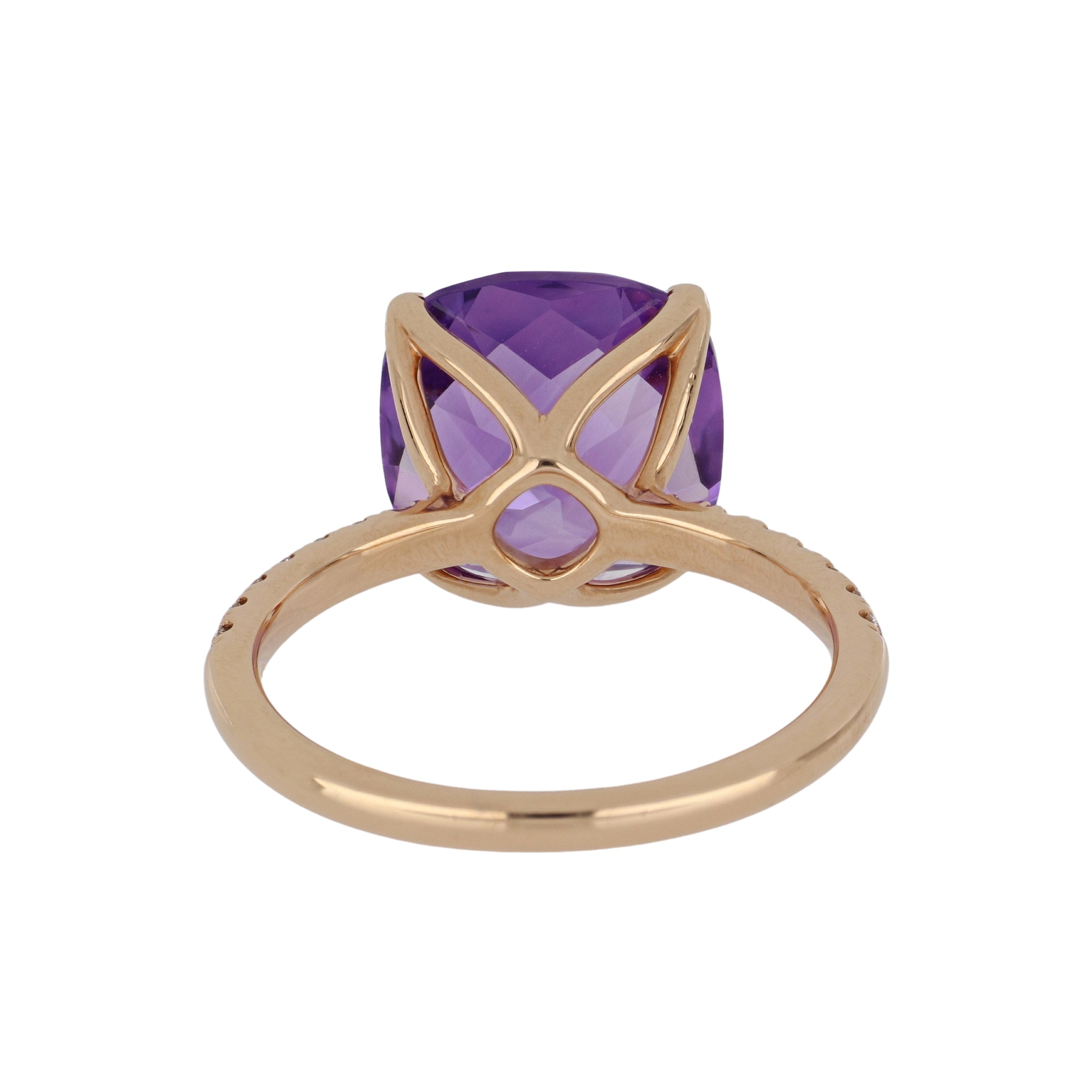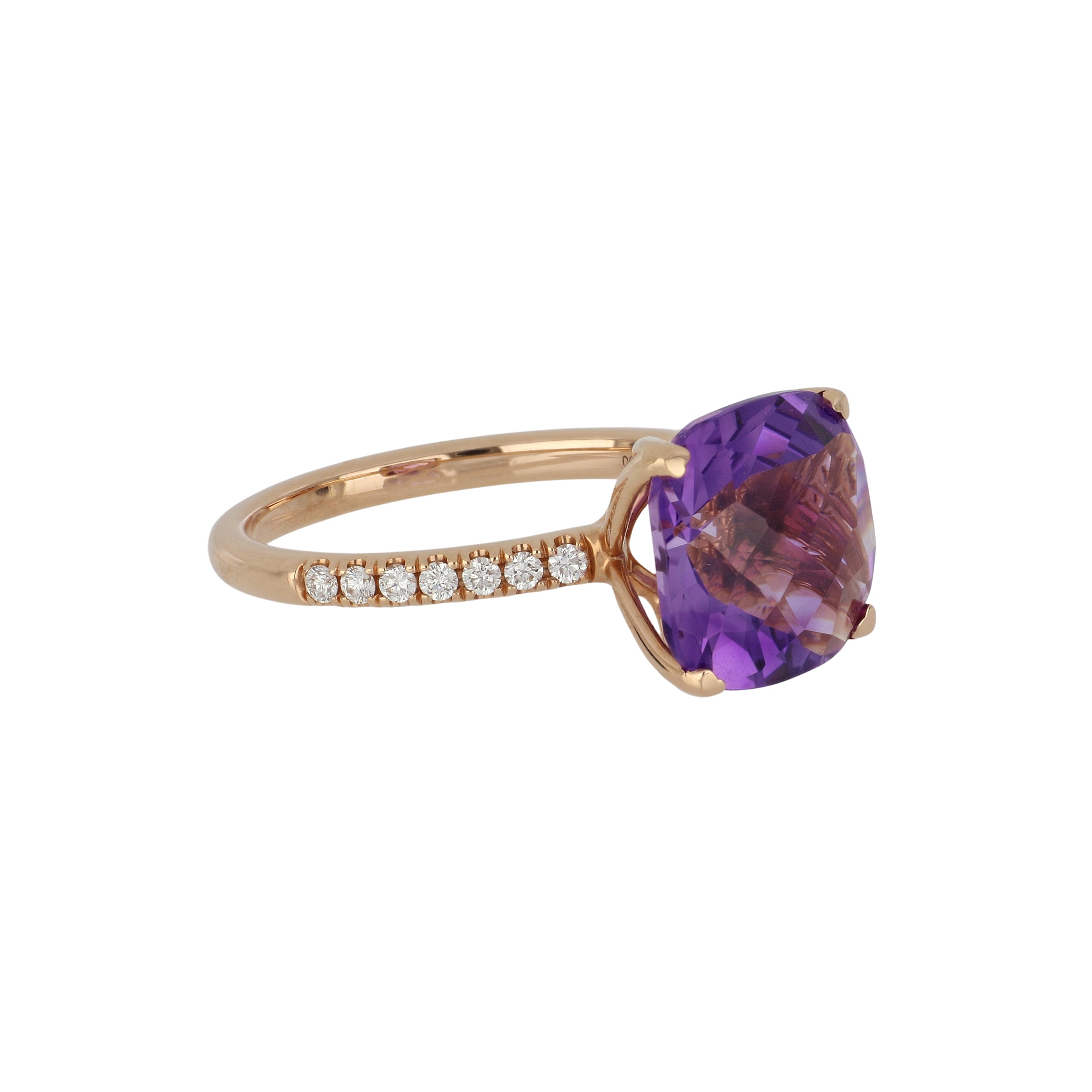 A Lisa Nik 'Rocks' collection ring featuring a cushion- shaped amethyst with diamonds in 18K rose gold.