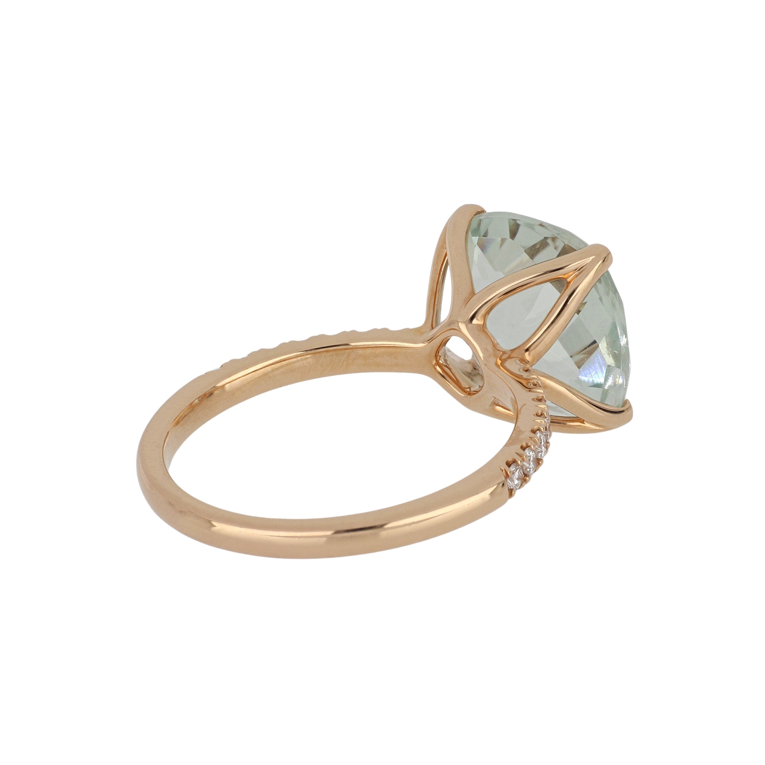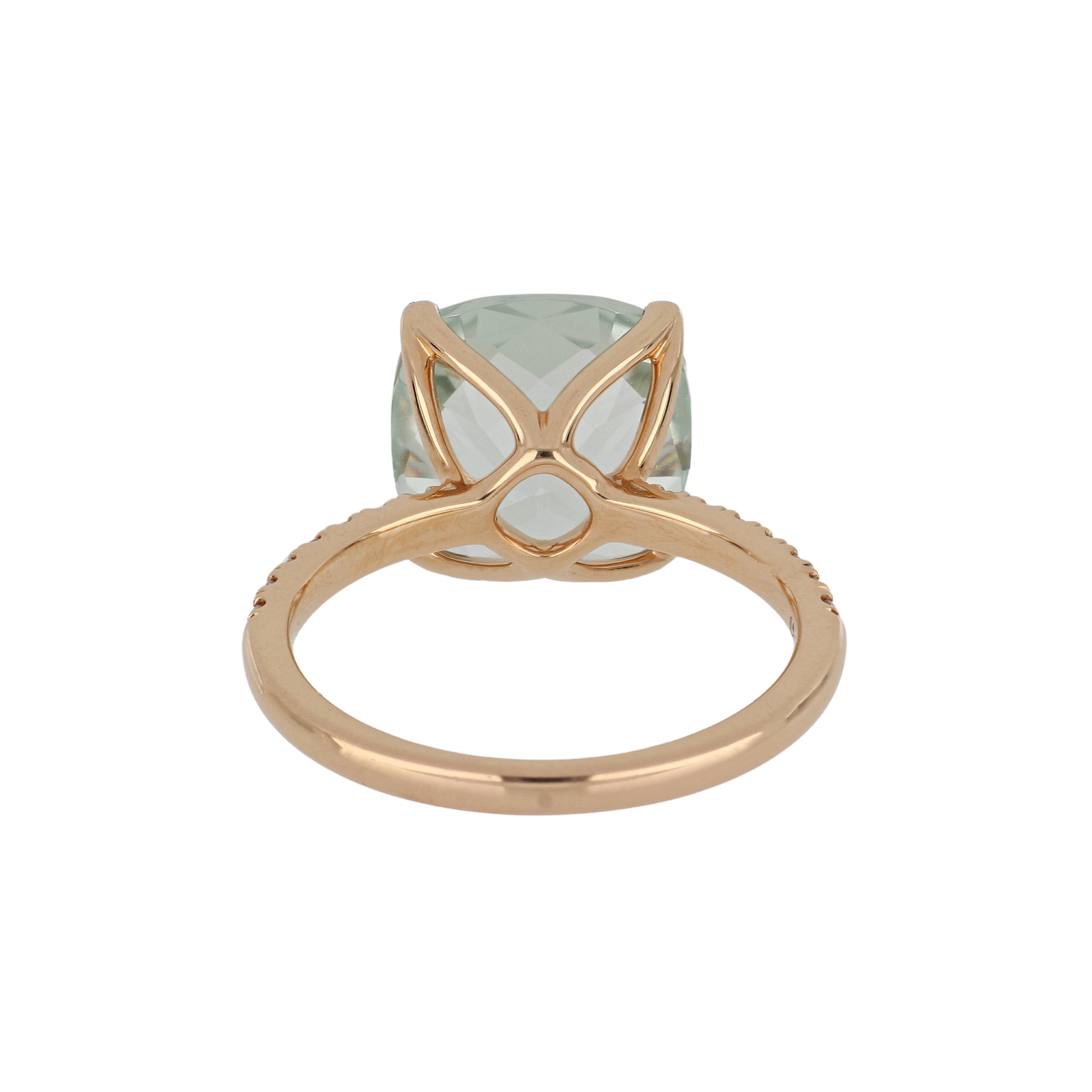 A Lisa Nik 'Rocks' collection ring featuring a cushion shaped, rose-cut green quartz with diamonds on the shank, set in 18K rose gold.