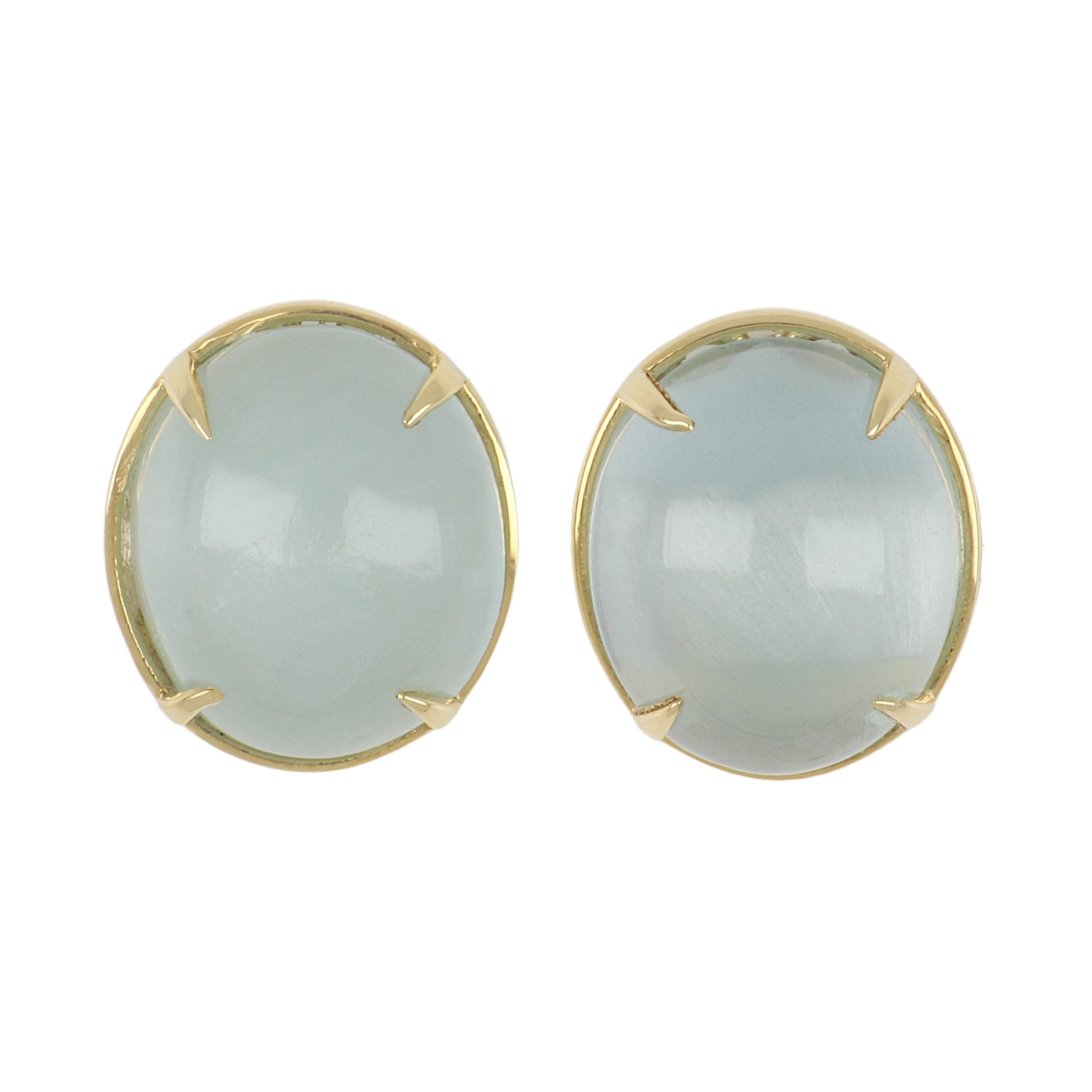 Tenenbaum 18K Gold Cabochon Aquamarine Button Earrings
