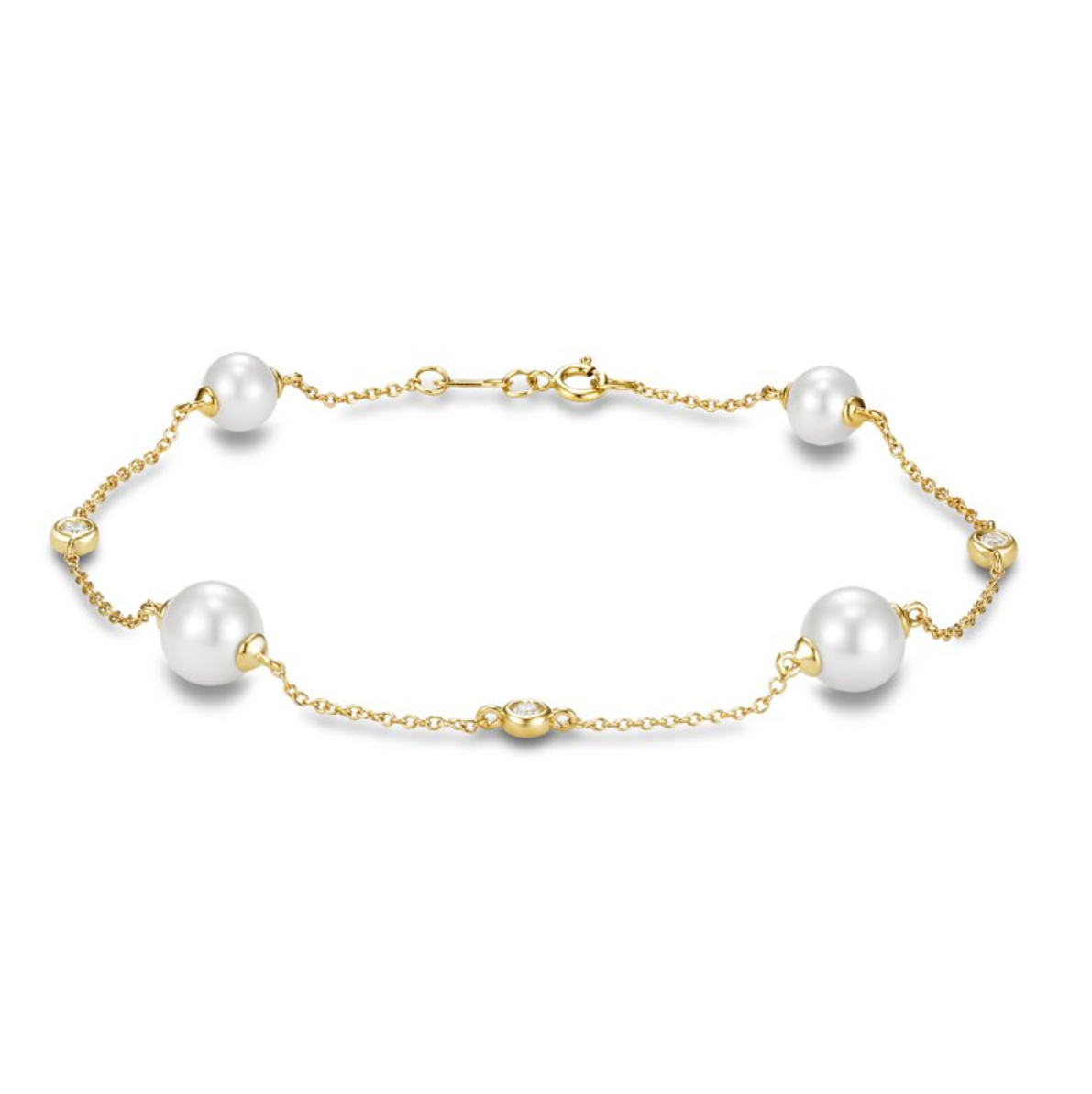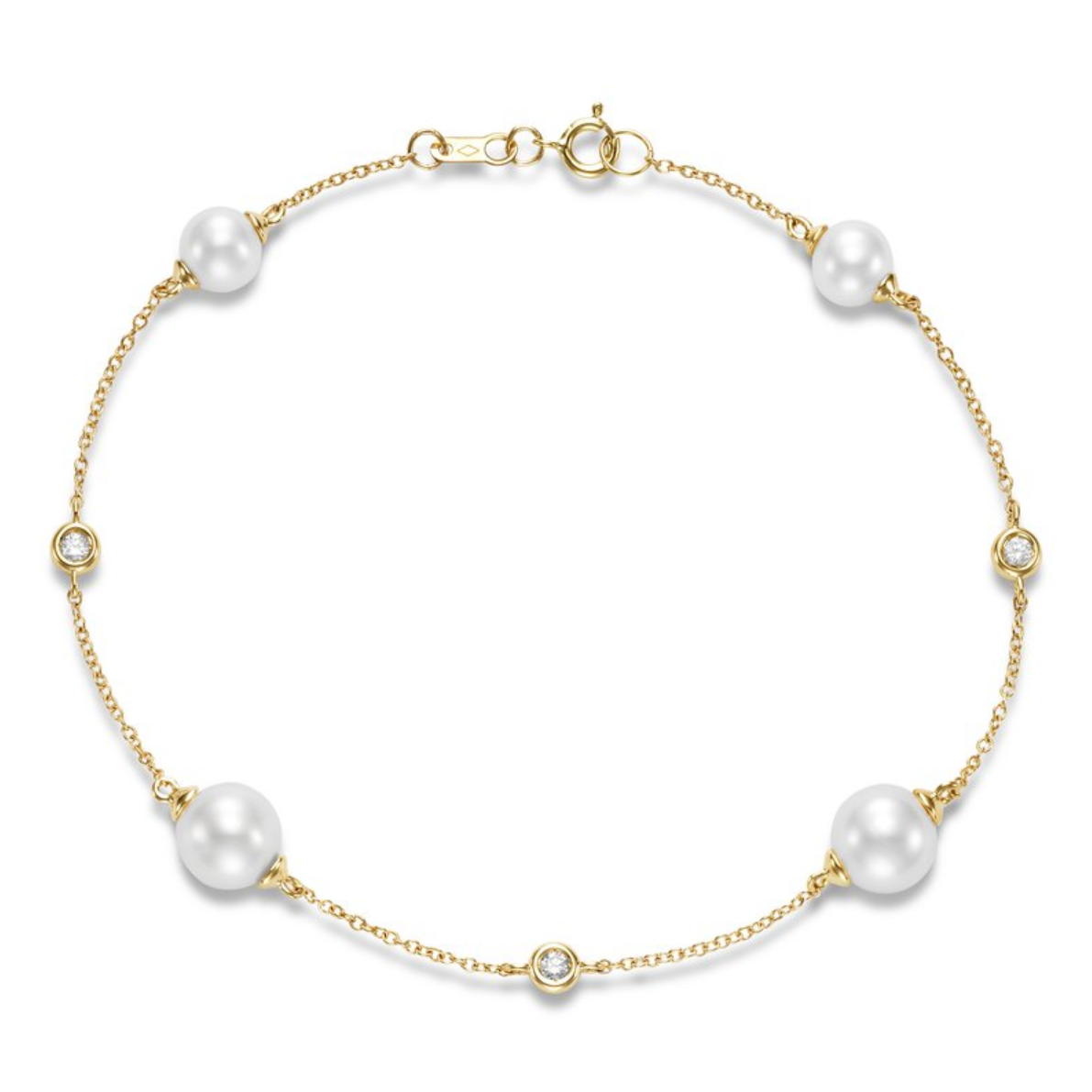 Mastoloni 14K Gold Chain Bracelet with Pearl with Diamonds