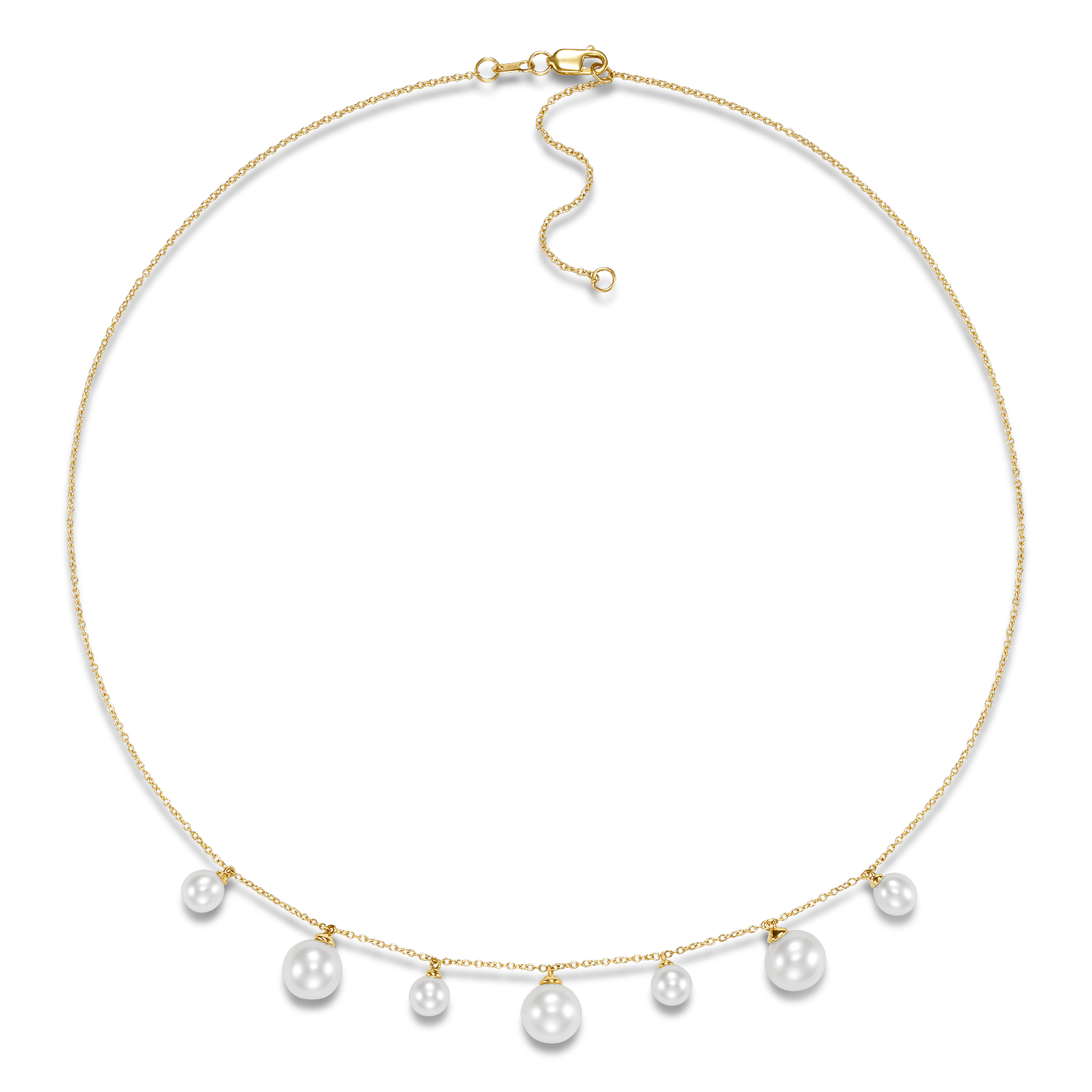 A Mastoloni multi-pearl drop necklace, set in 14K yellow gold.