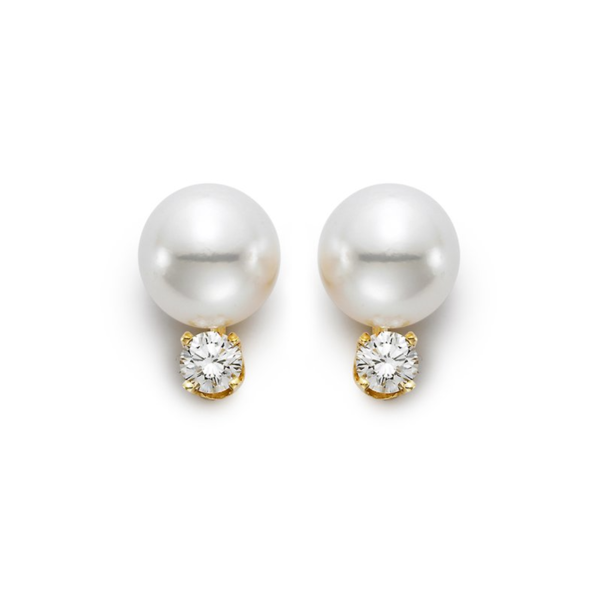 A pair of Mastoloni pearl stud earrings with diamonds, set in 18K yellow gold.