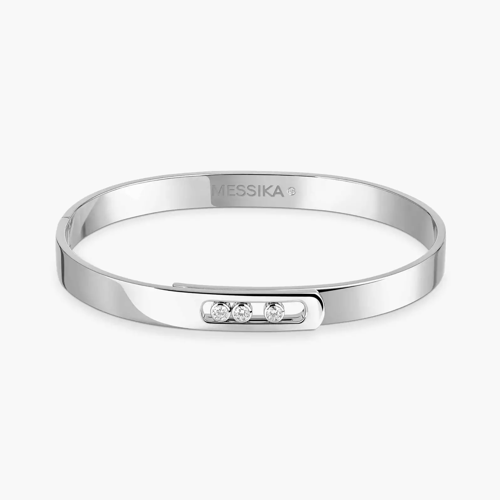 A Messika 18K white gold Move Noa Bangle bracelet with diamonds.