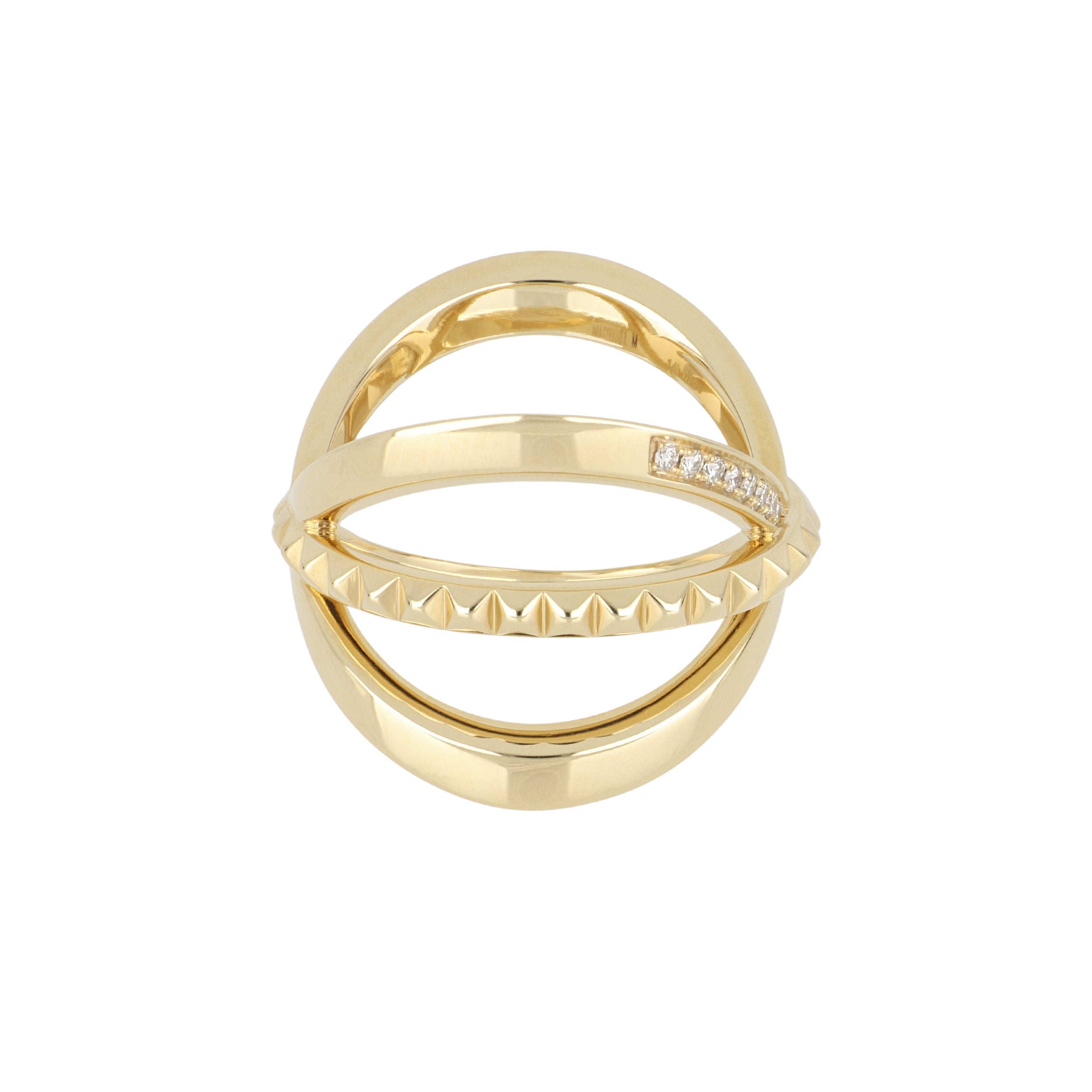 A Michael M Tetra crossover band with diamonds, set in 14K yellow gold.