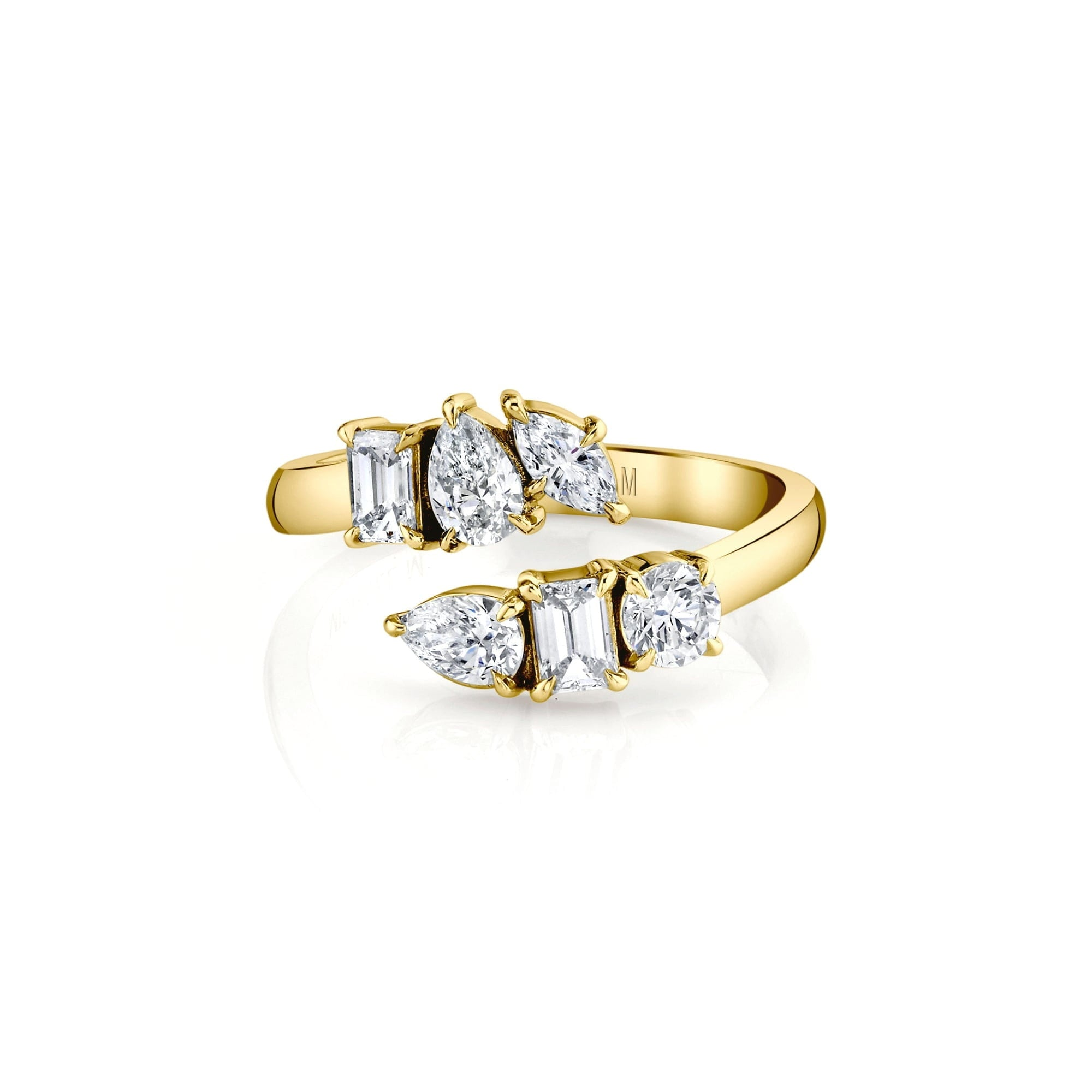 A Michael M 18K yellow gold 'Montage Bypass' ring with diamond ends.