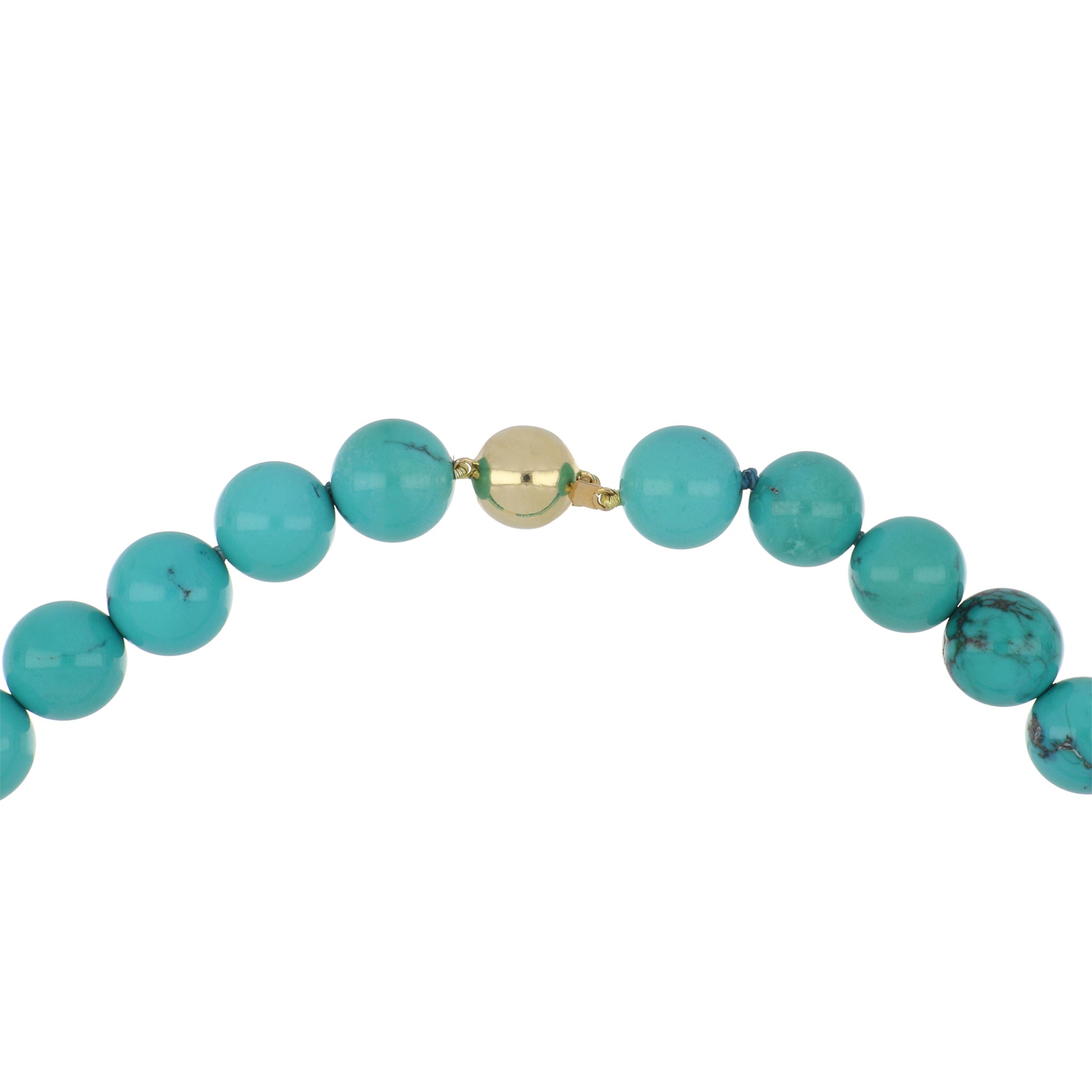 Mid-Century 14K Gold Turquoise Bead Necklace with Earrings