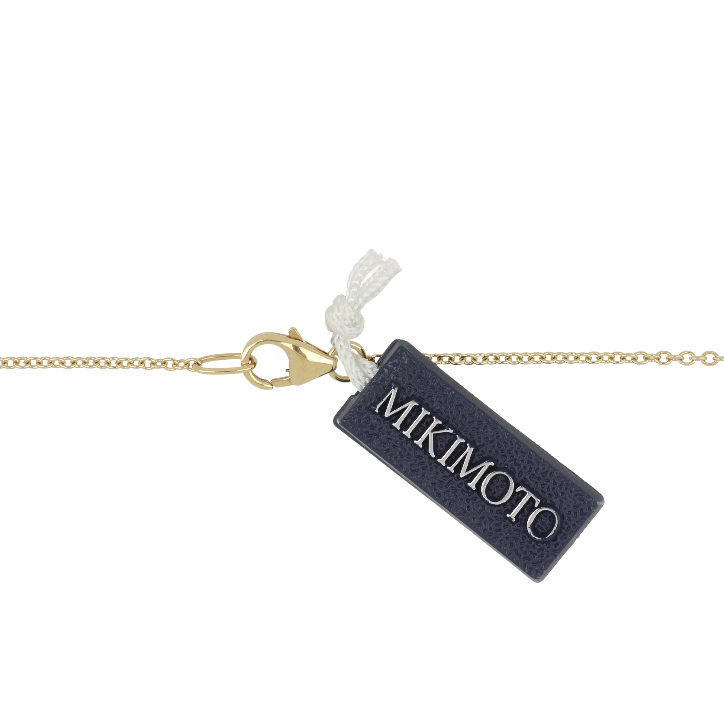 An estate Mikimoto "M Collection" golden South Sea pearl pendant necklace with pave round brilliant-cut diamond accents, set in 18K yellow gold.