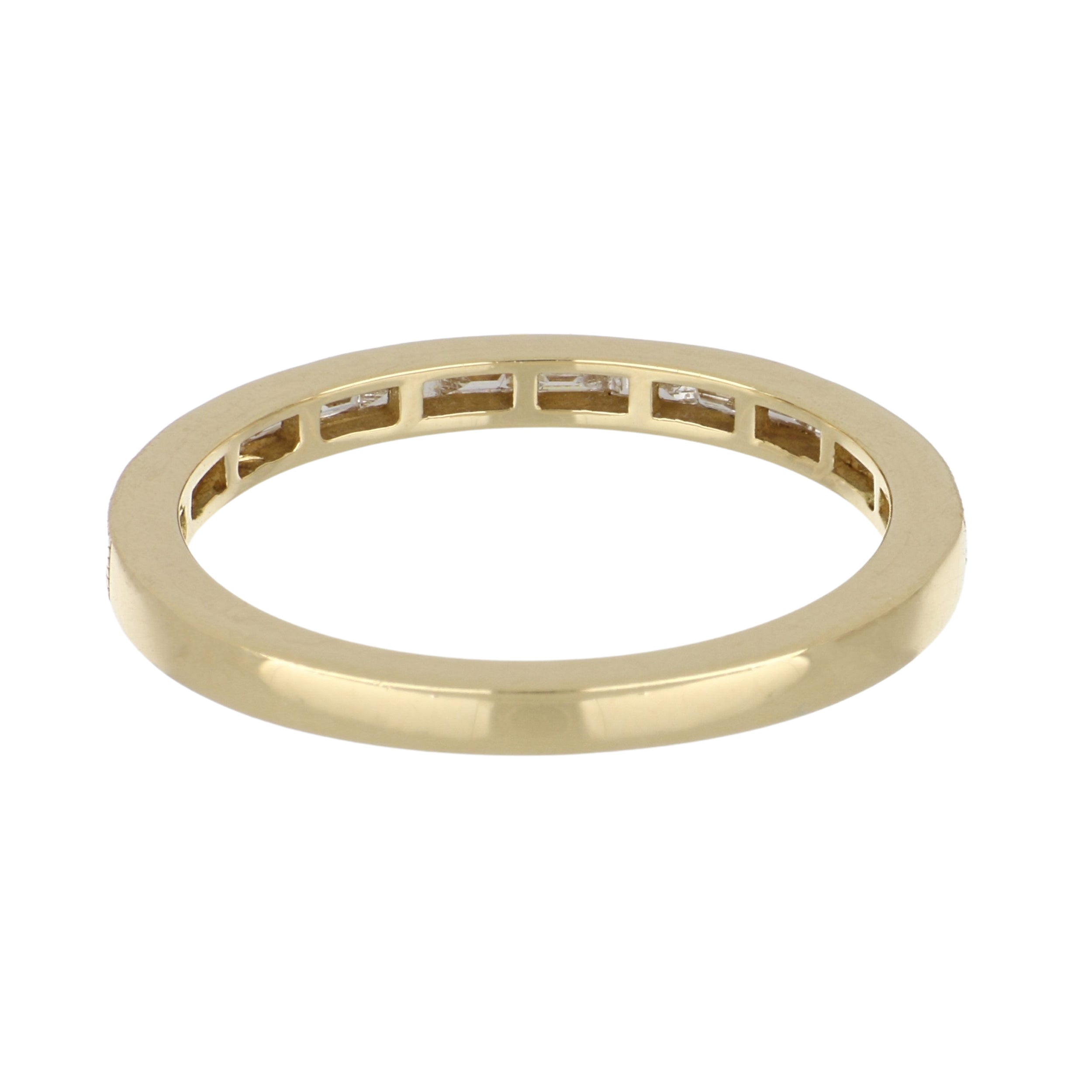 A channel set baguette cut diamond half band, set in 18K yellow gold.