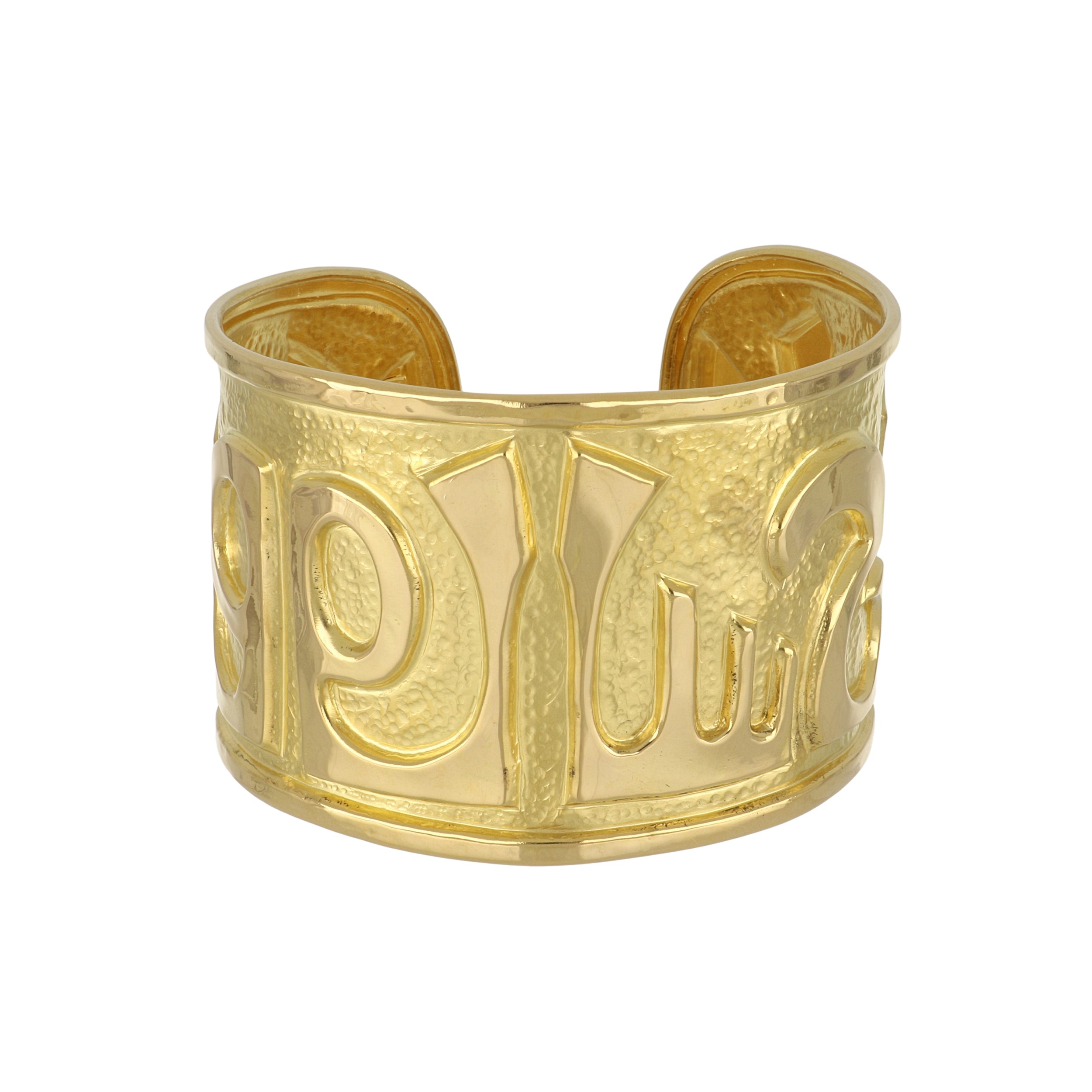 A vintage LaLaounis 18K yellow gold hammered cuff with raised background. Signed: LaLaounis, Greece, Circa 1970.