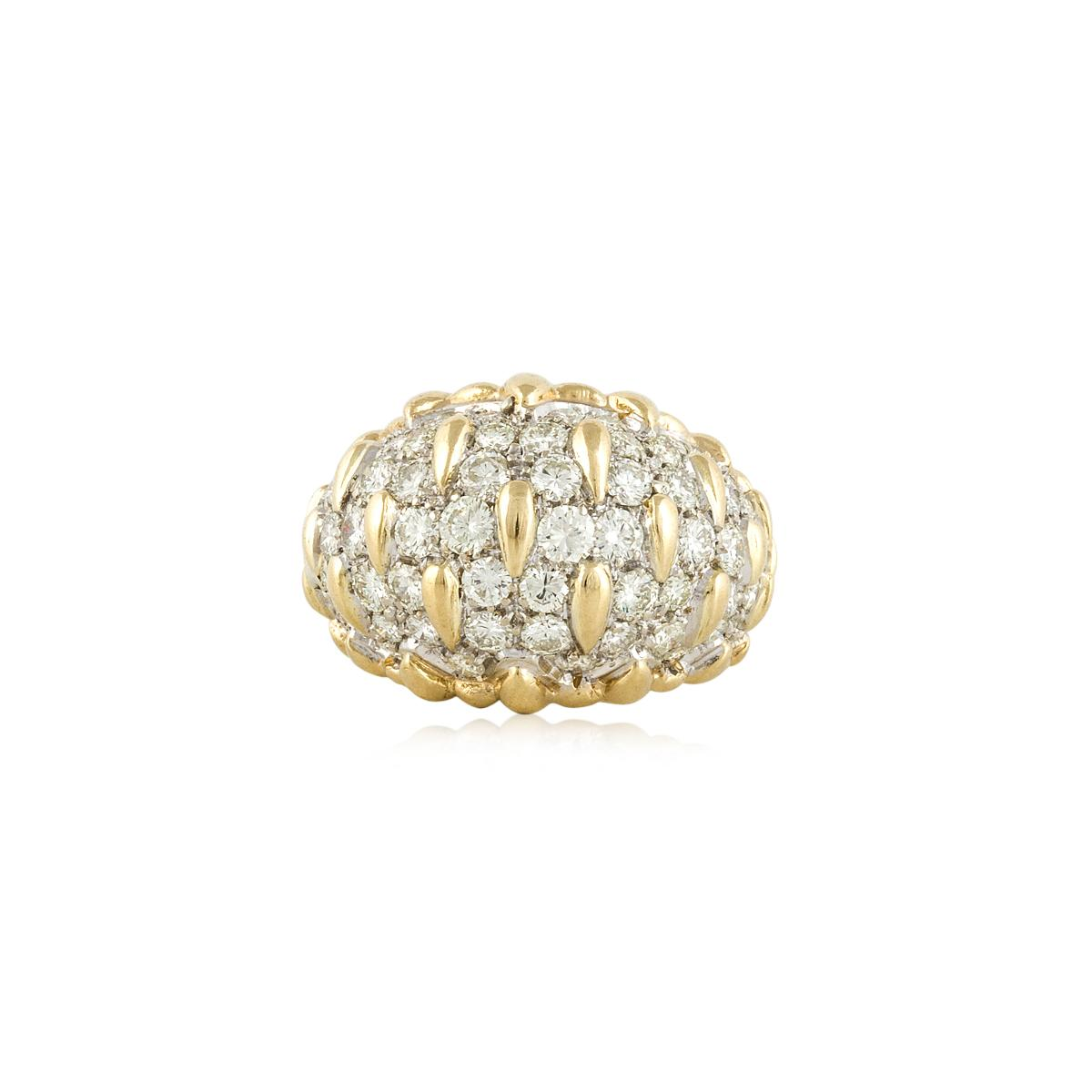 A vintage bombe-style ring featuring round brilliant-cut diamonds in18 karat yellow gold. Circa 1990.