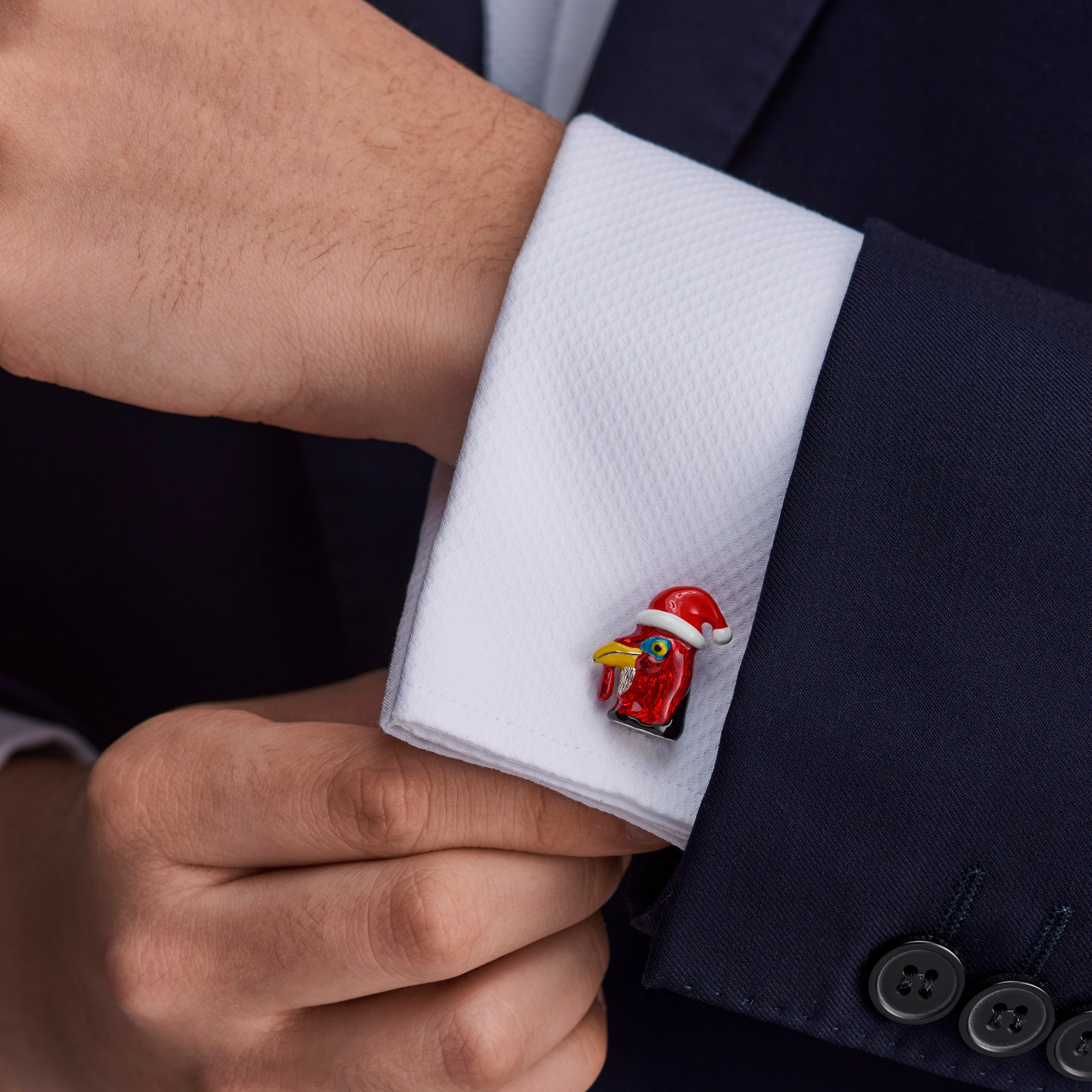 A pair of Deakin & Francis Christmas Turkey cufflinks with enamel in sterling silver.