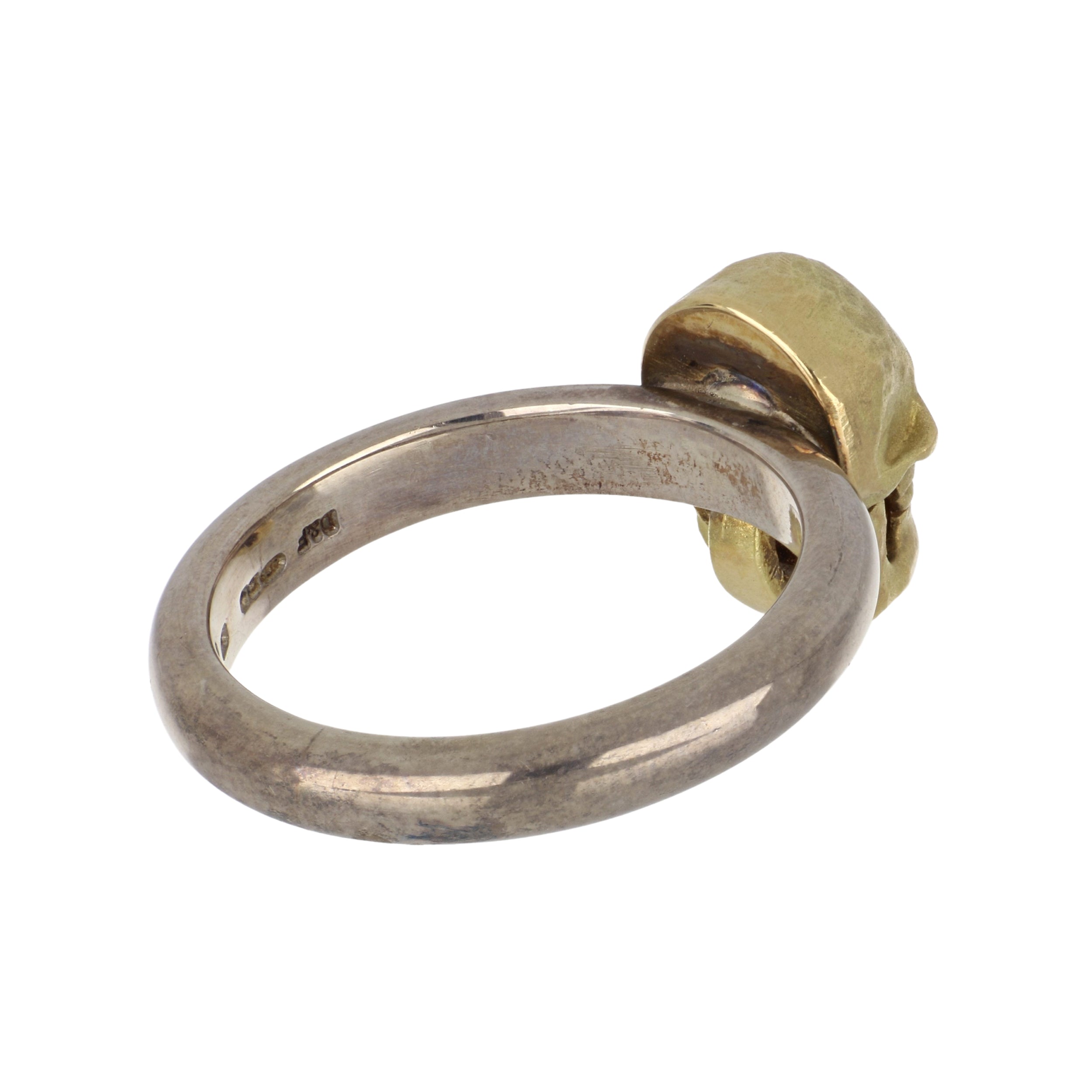 A Deakin & Francis skull ring with diamond eyes set in sterling silver and 18K yellow gold.