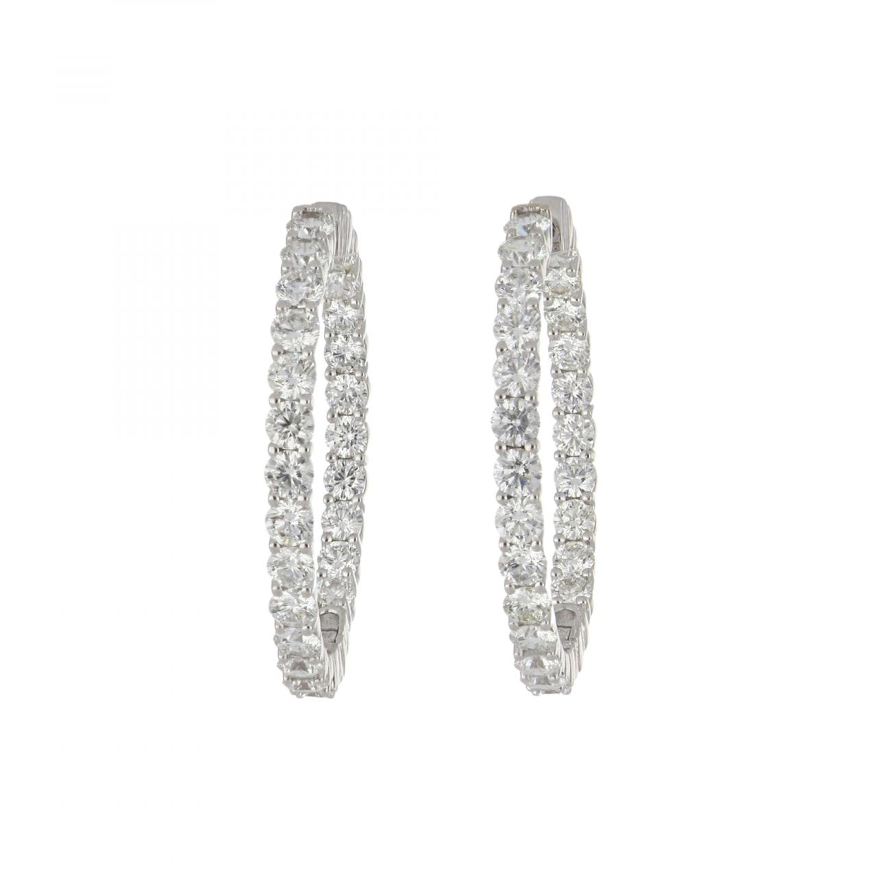 A pair of estate 18K white gold diamond hoop earrings. Circa 2010.