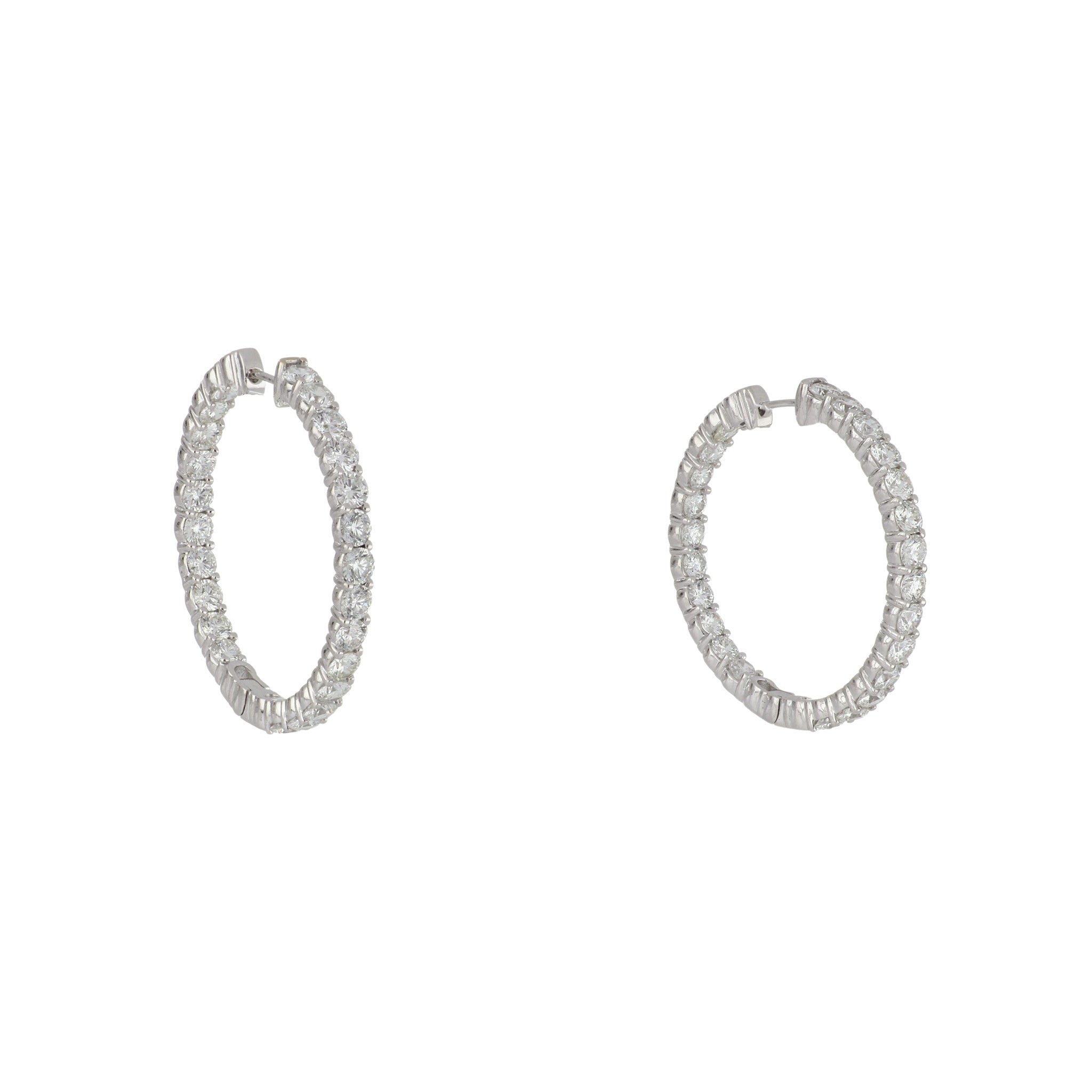 Estate 18K White Gold Diamond Hoop Earrings