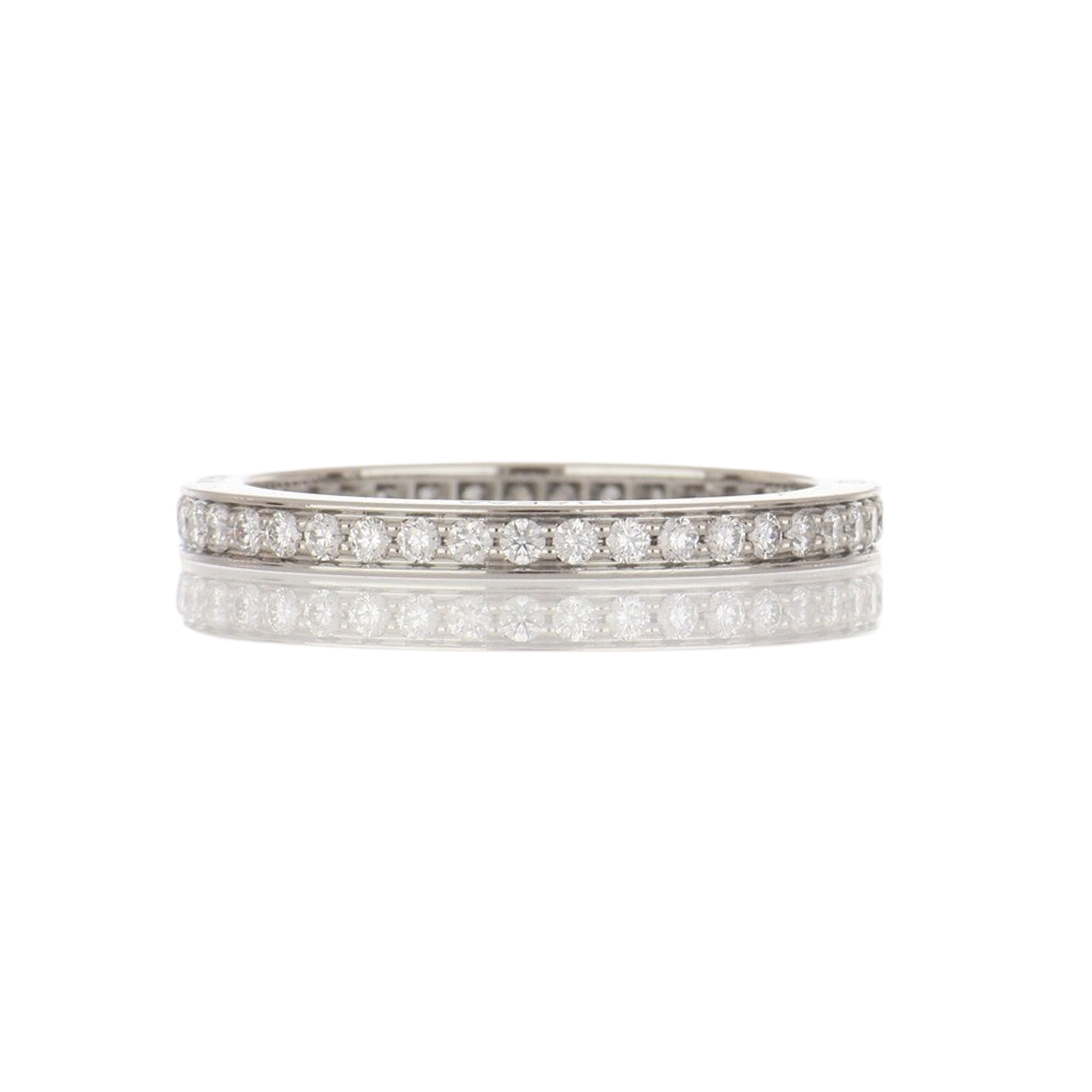 An estate Cartier platinum round brilliant-cut diamond eternity band. Circa 2020.