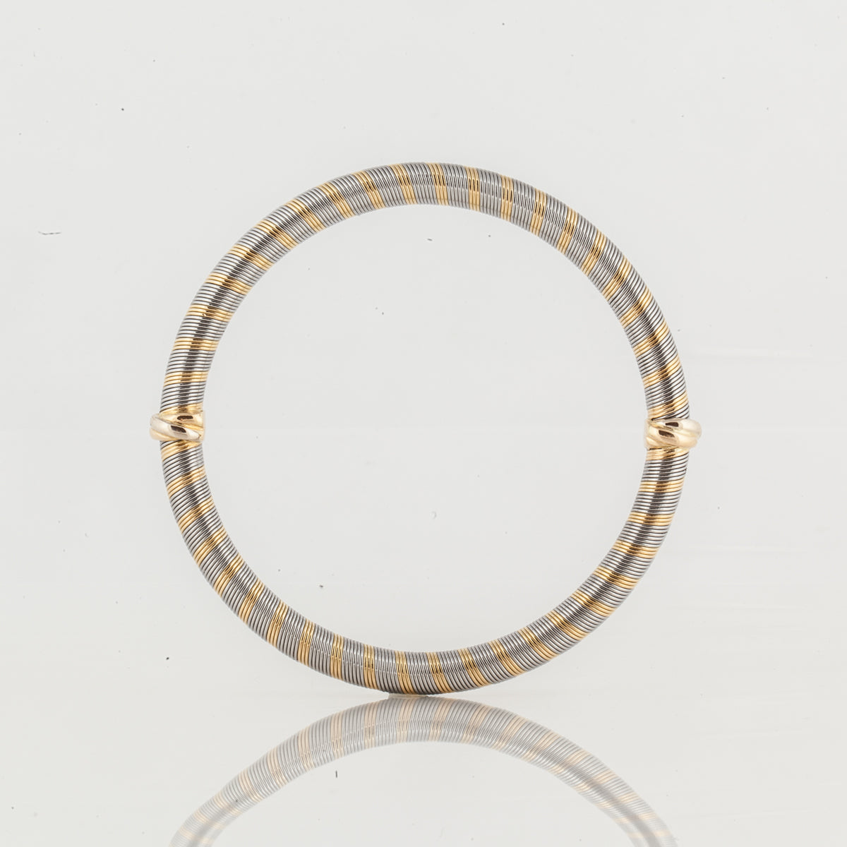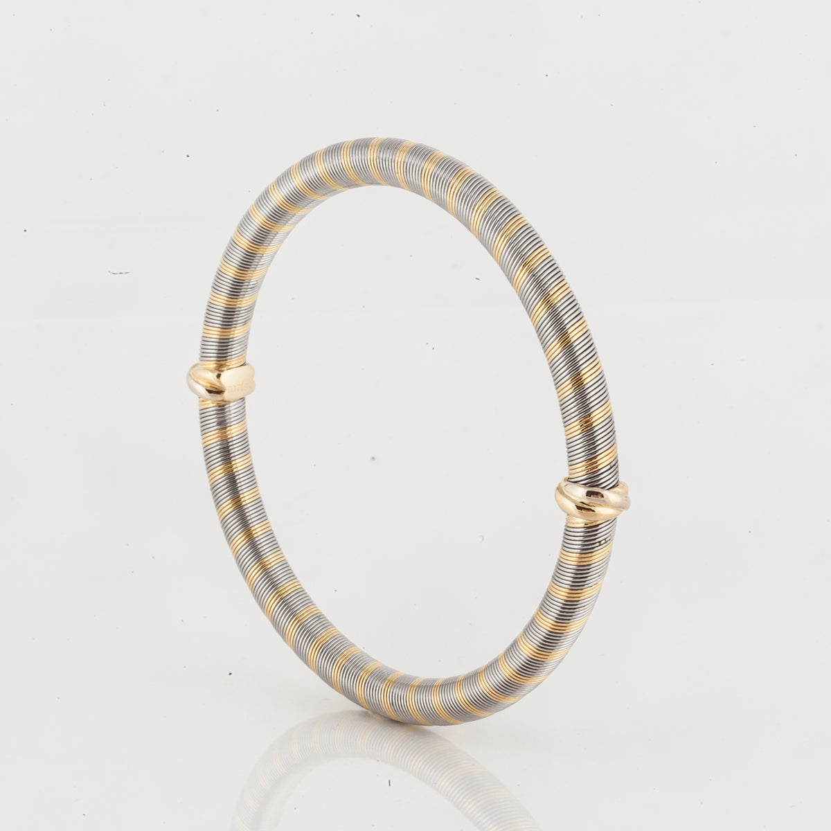 An estate Cartier cable-style bangle in 18K yellow and white gold. Accompanied with the certificate of authenticity. Circa 1980.