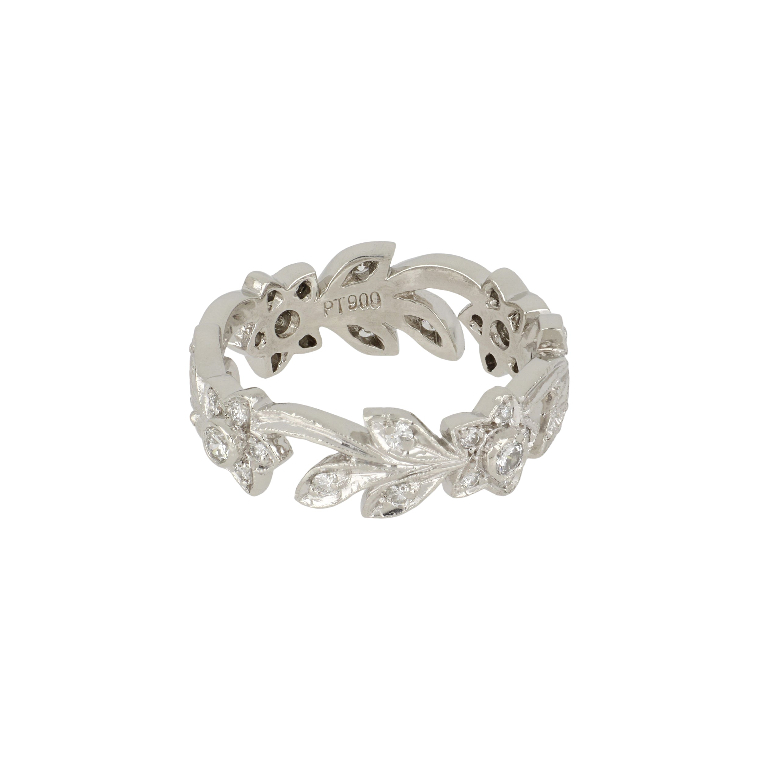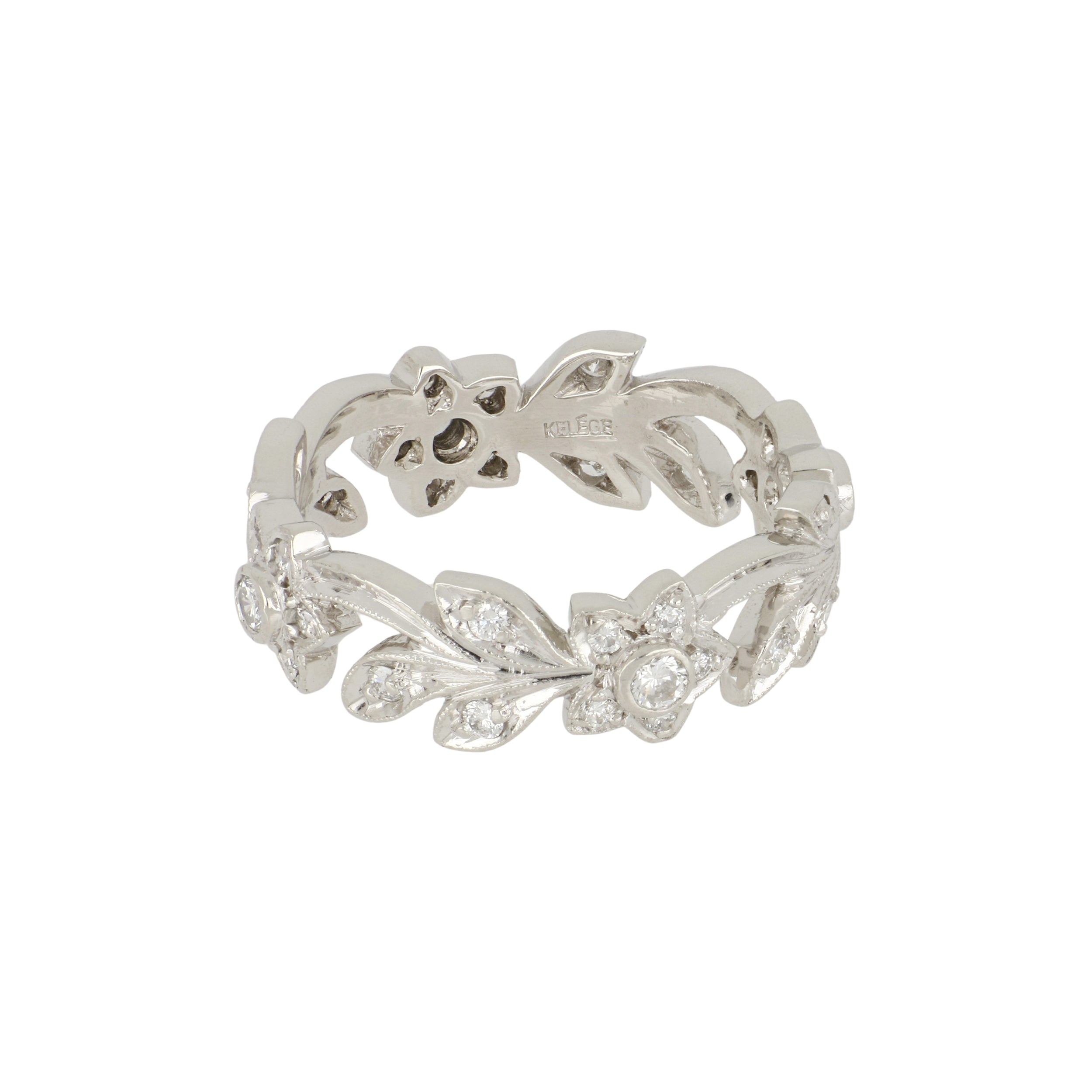 An estate Jack Kelege platinum diamond floral band. Circa 2000.
