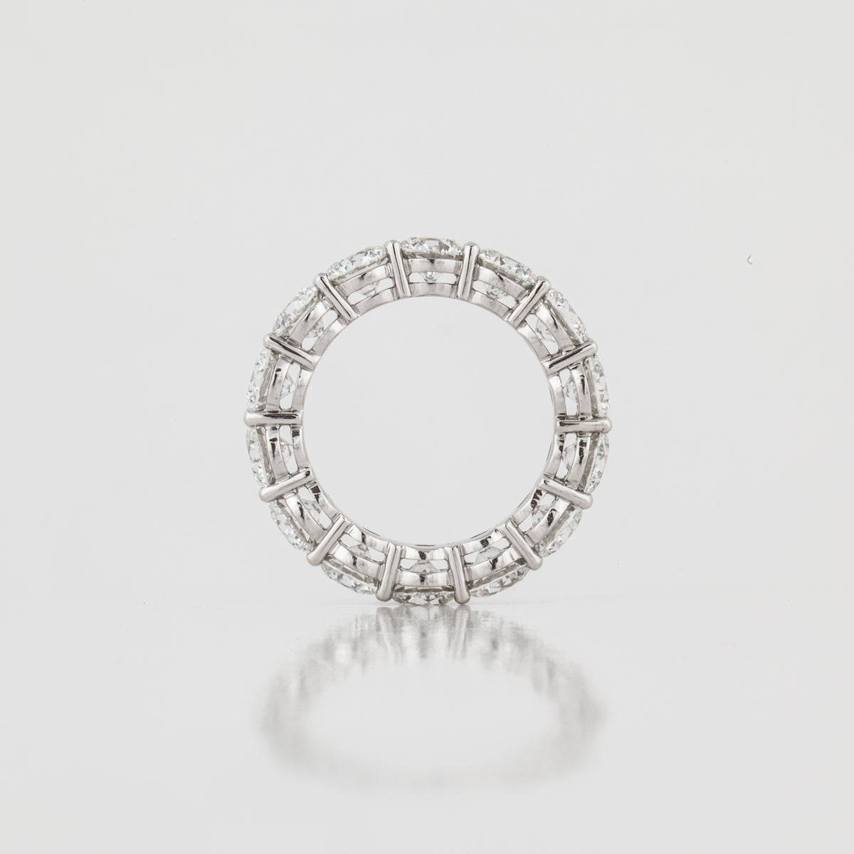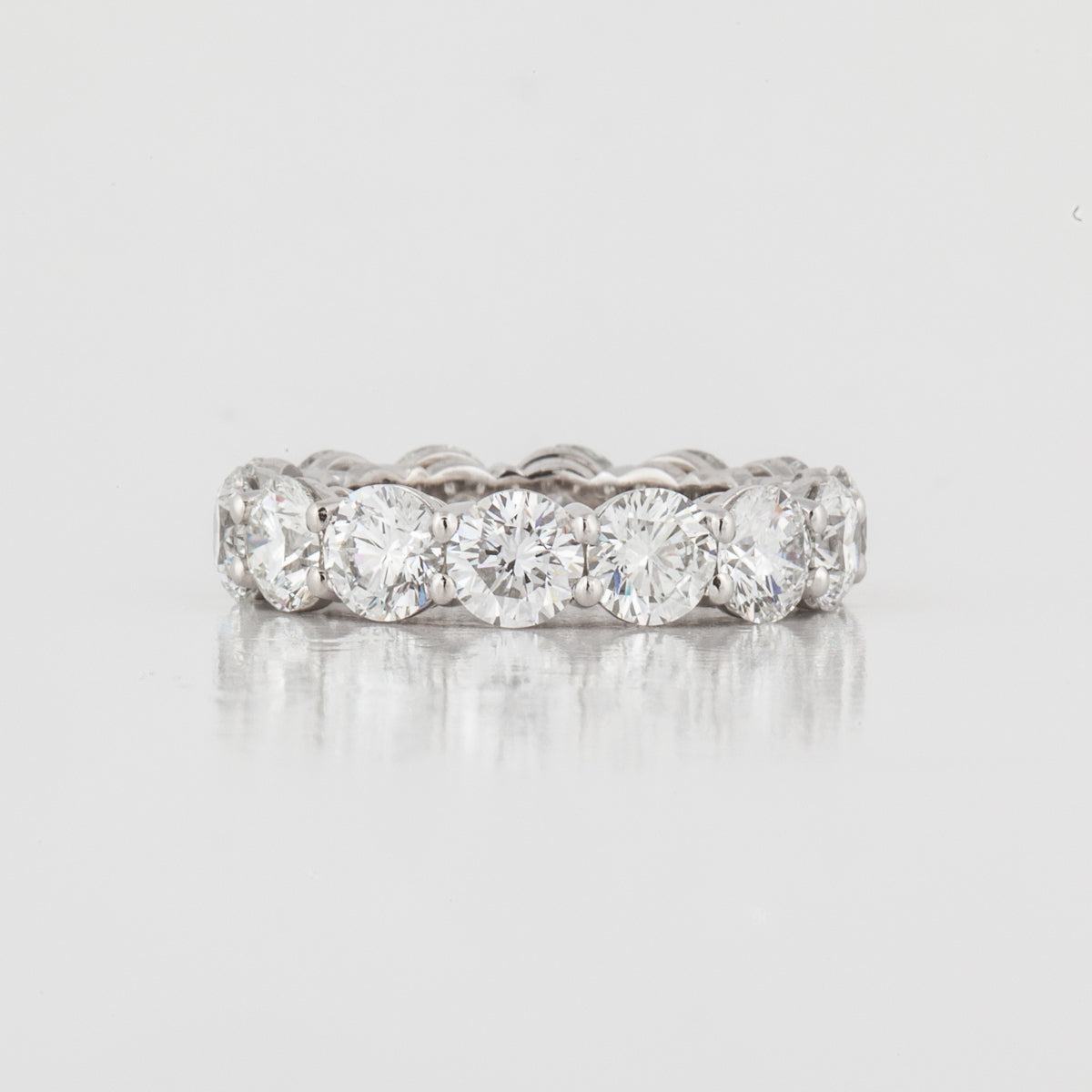An estate shared prong round diamond eternity band set in platinum. Circa 2010.