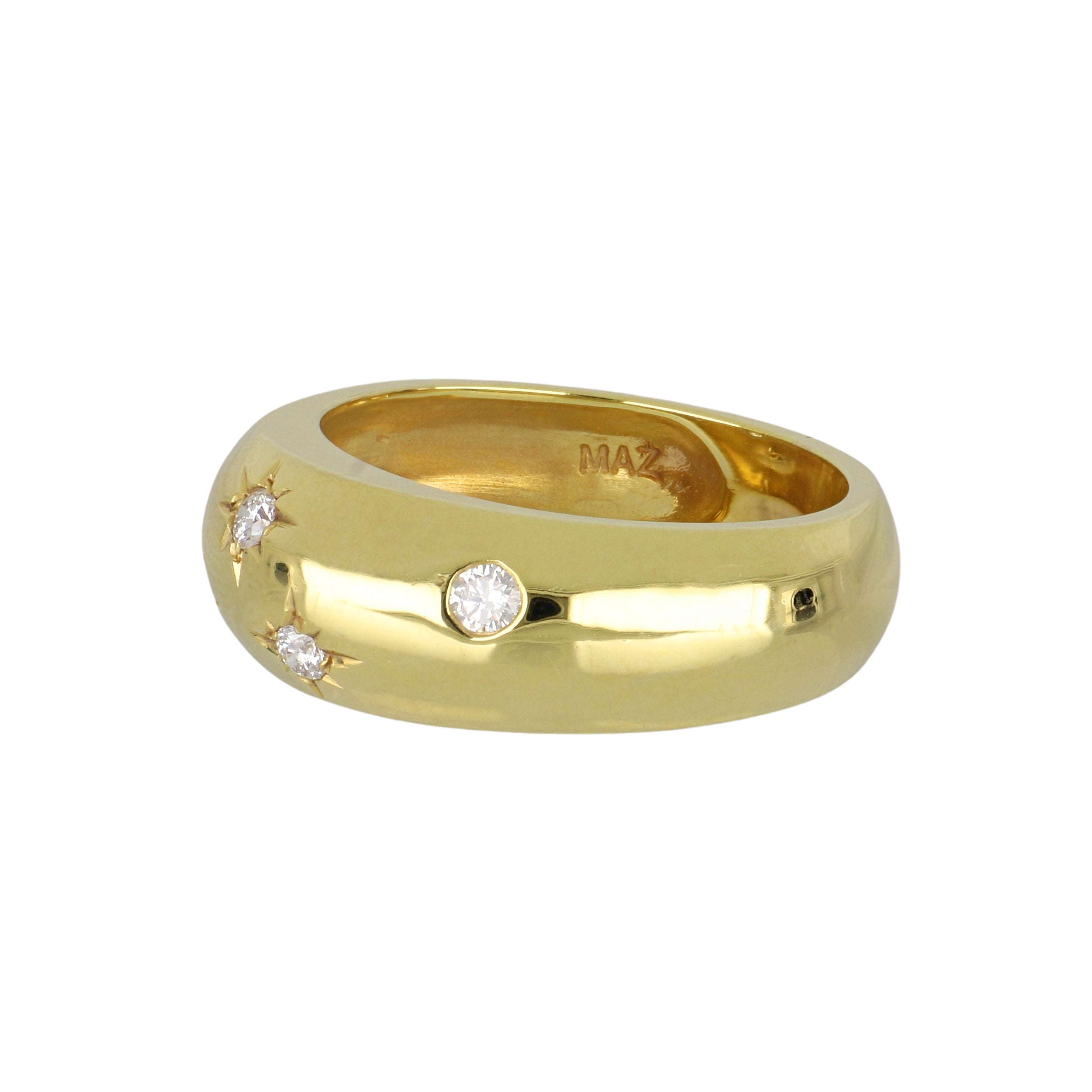 A Mazza dome ring with star-set round brilliant-cut diamonds, set in 14k yellow gold.