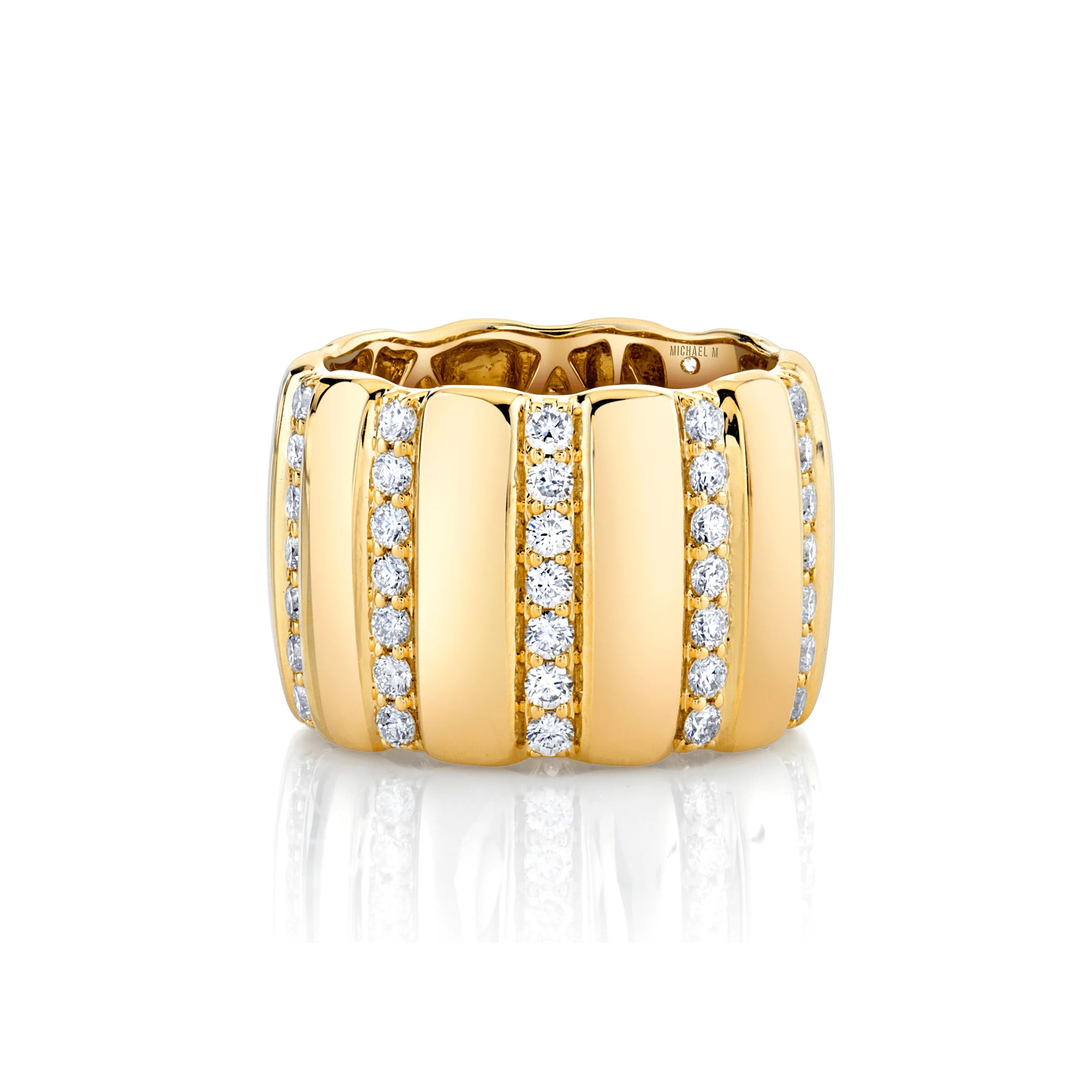 A Michael M 14K yellow gold 'Orb Ribbed Ring' with diamonds.