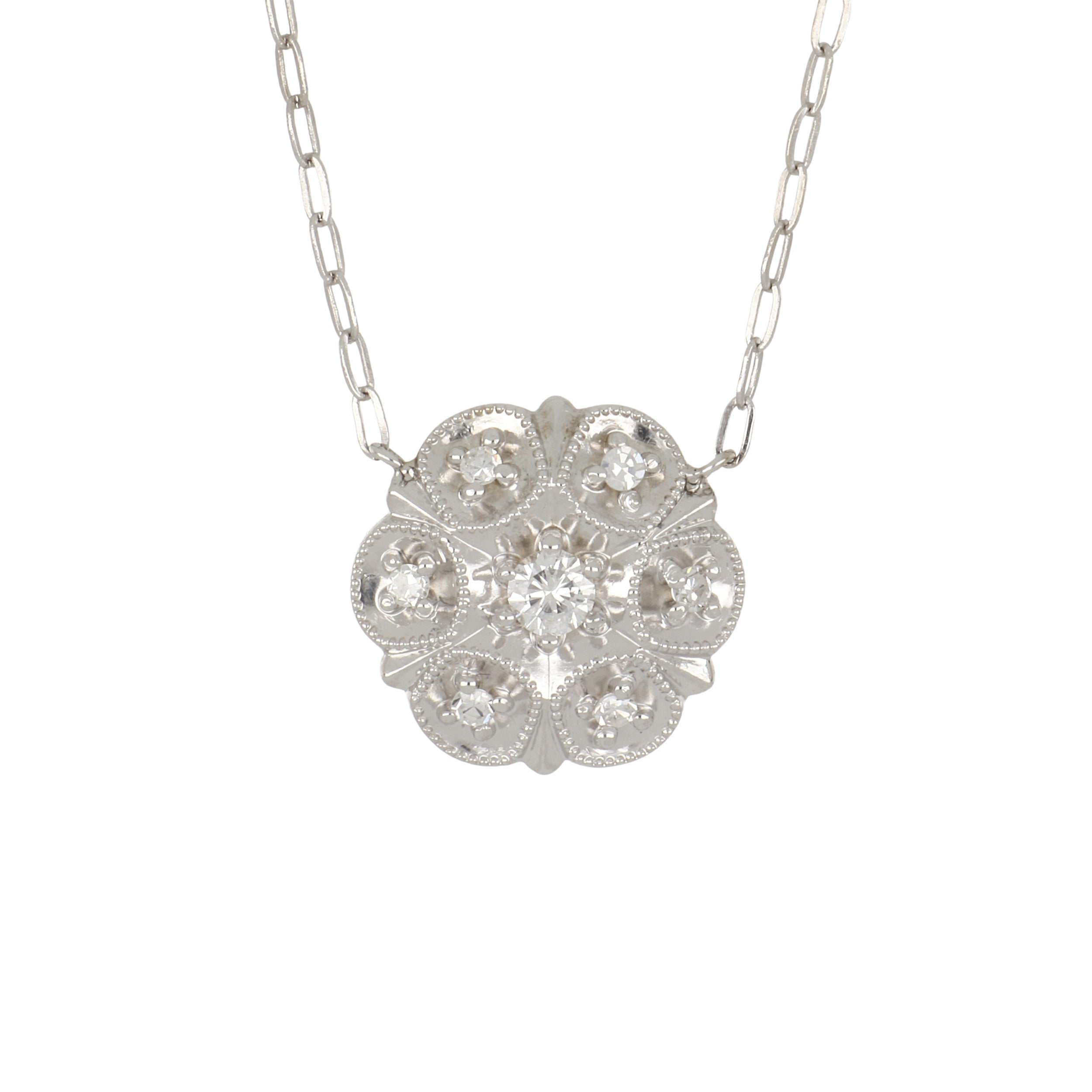 Mid-Century 14K White Gold Beaded Diamond Pendant