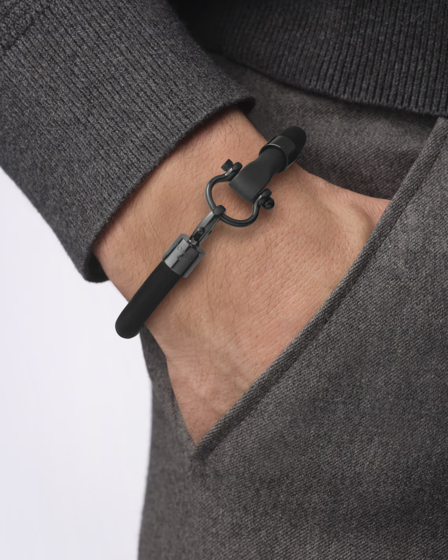 Sailing bracelet in stainless steel with black DLC and black rubber. Using moulded rubber, like the watch straps, the line of sailing bracelets is casual, colourful and easy to wear.