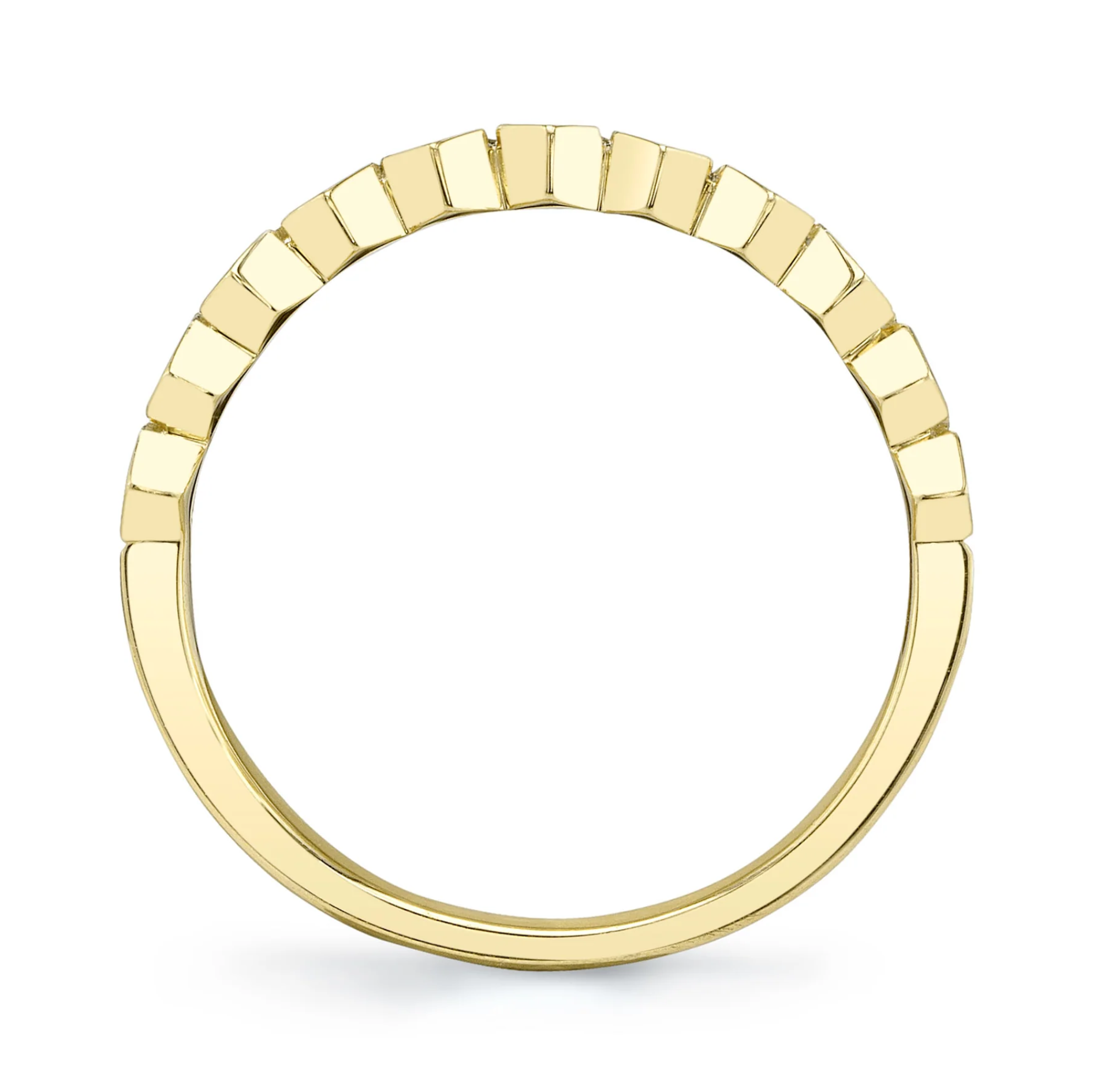 A Shy Creation bezel-set baguette-cut diamond half band, set in 14K yellow gold.