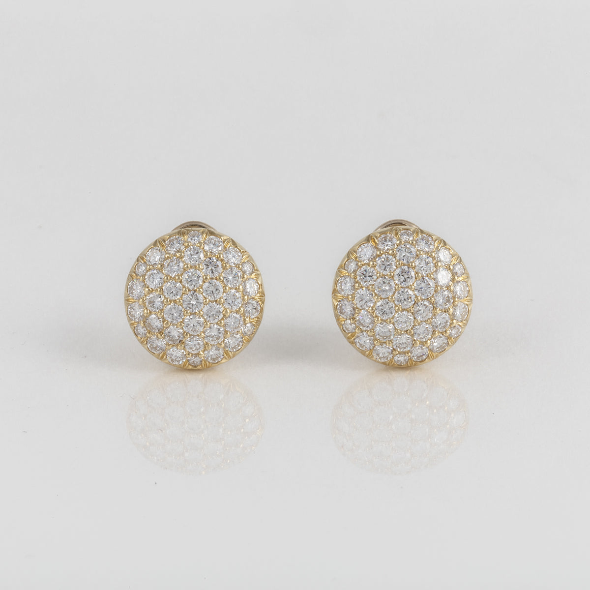 A vintage pair of Kurt Wayne diamond button earrings in 18 karat yellow gold. Circa 1980.