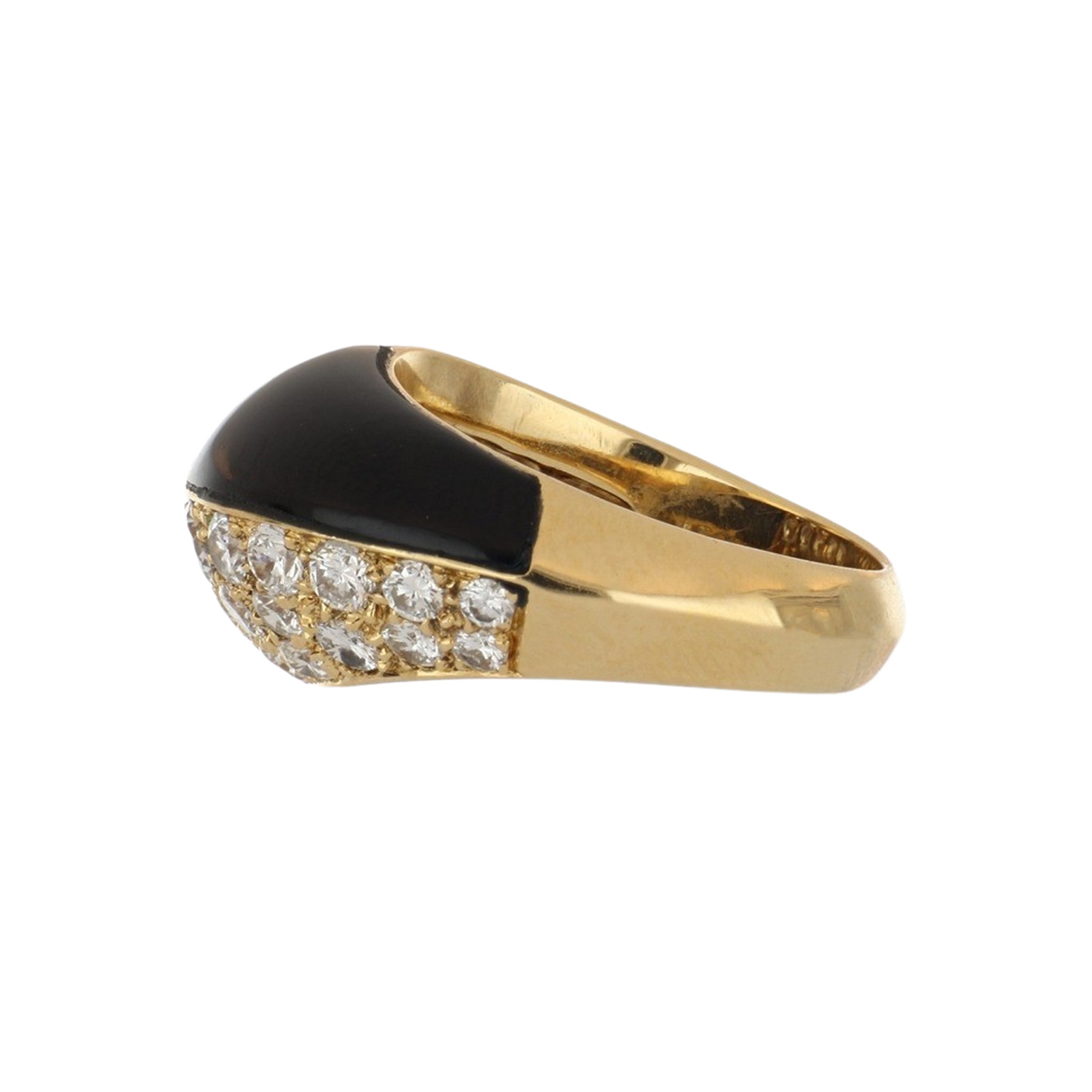 Vintage Mauboussin 18K Gold Onyx & Diamond Geometric Ring